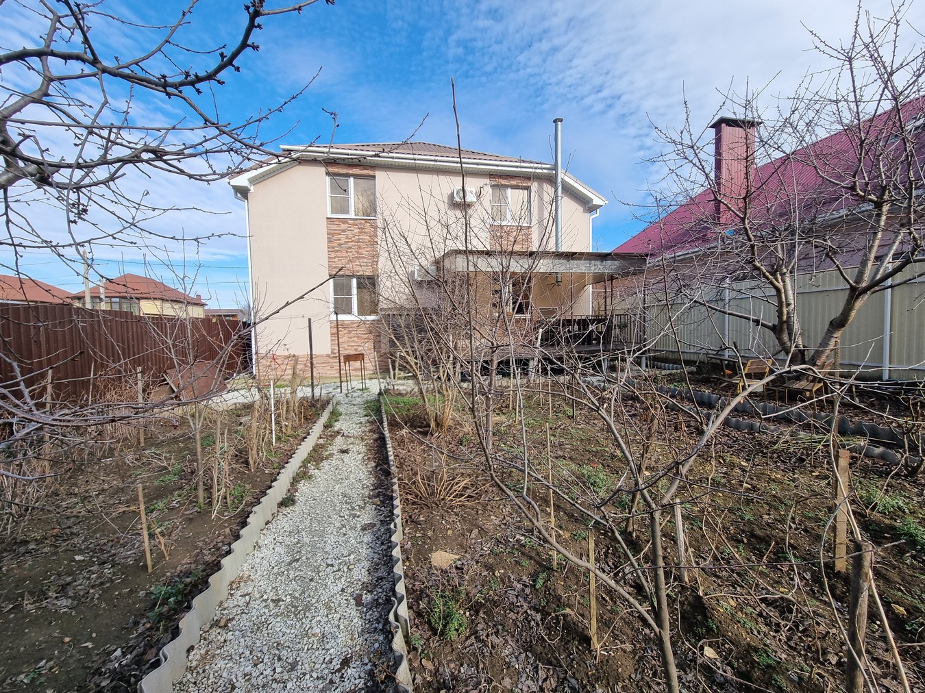 На участке большой абрикос,инжир и другие плодовые деревья.