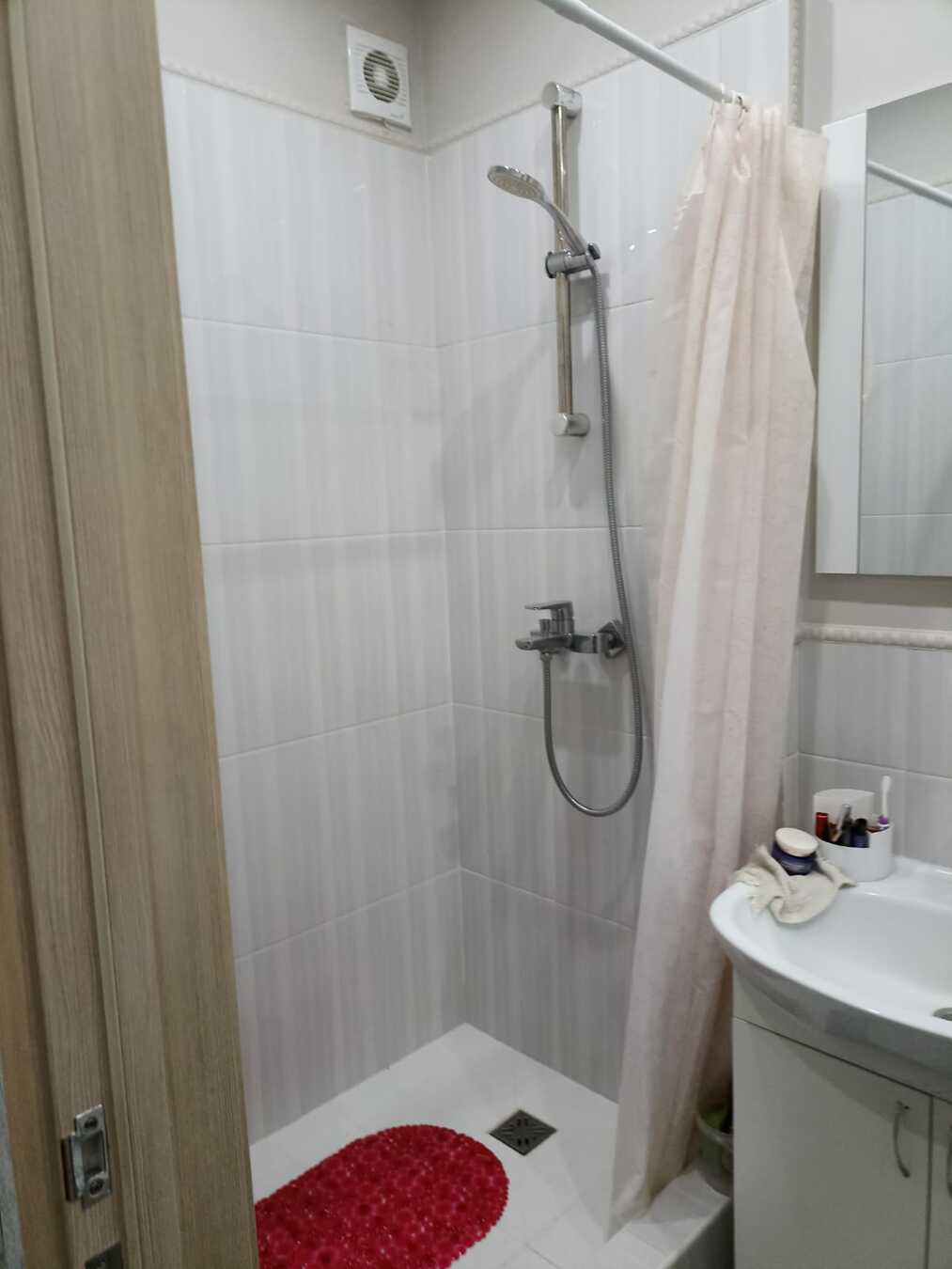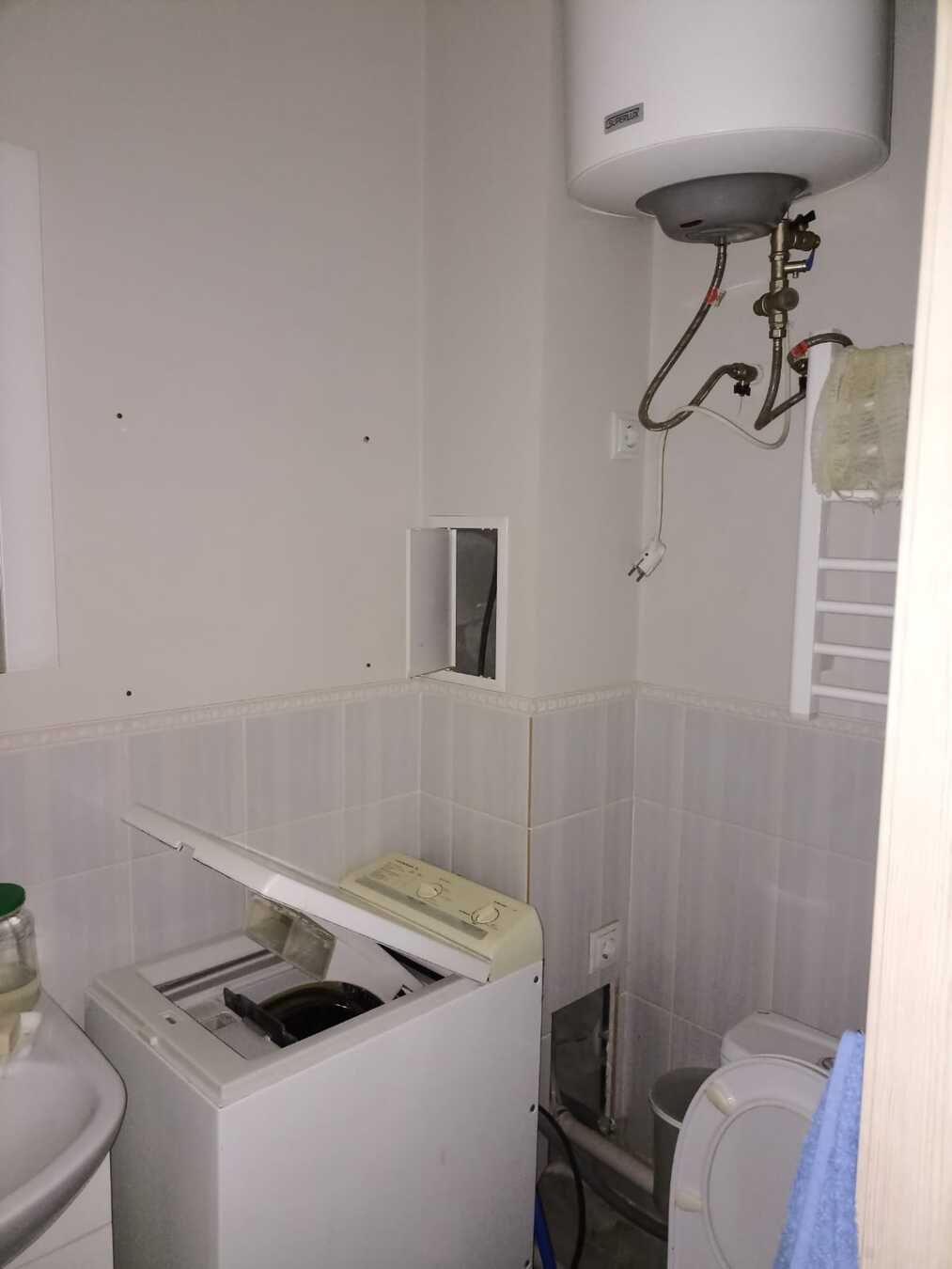 Коммуникации: электричество, вода, канализация. На полу плитка.