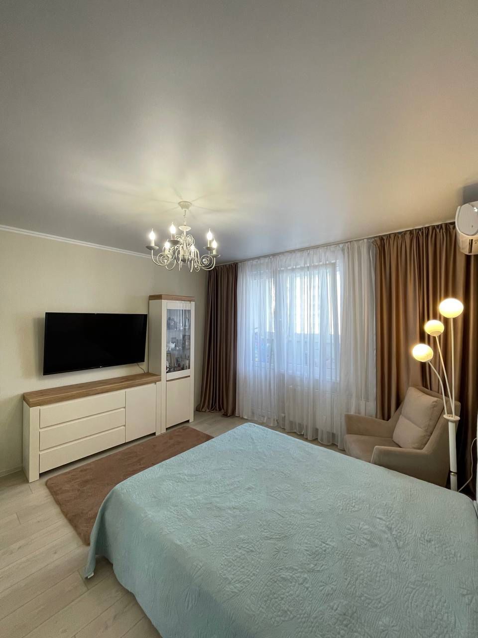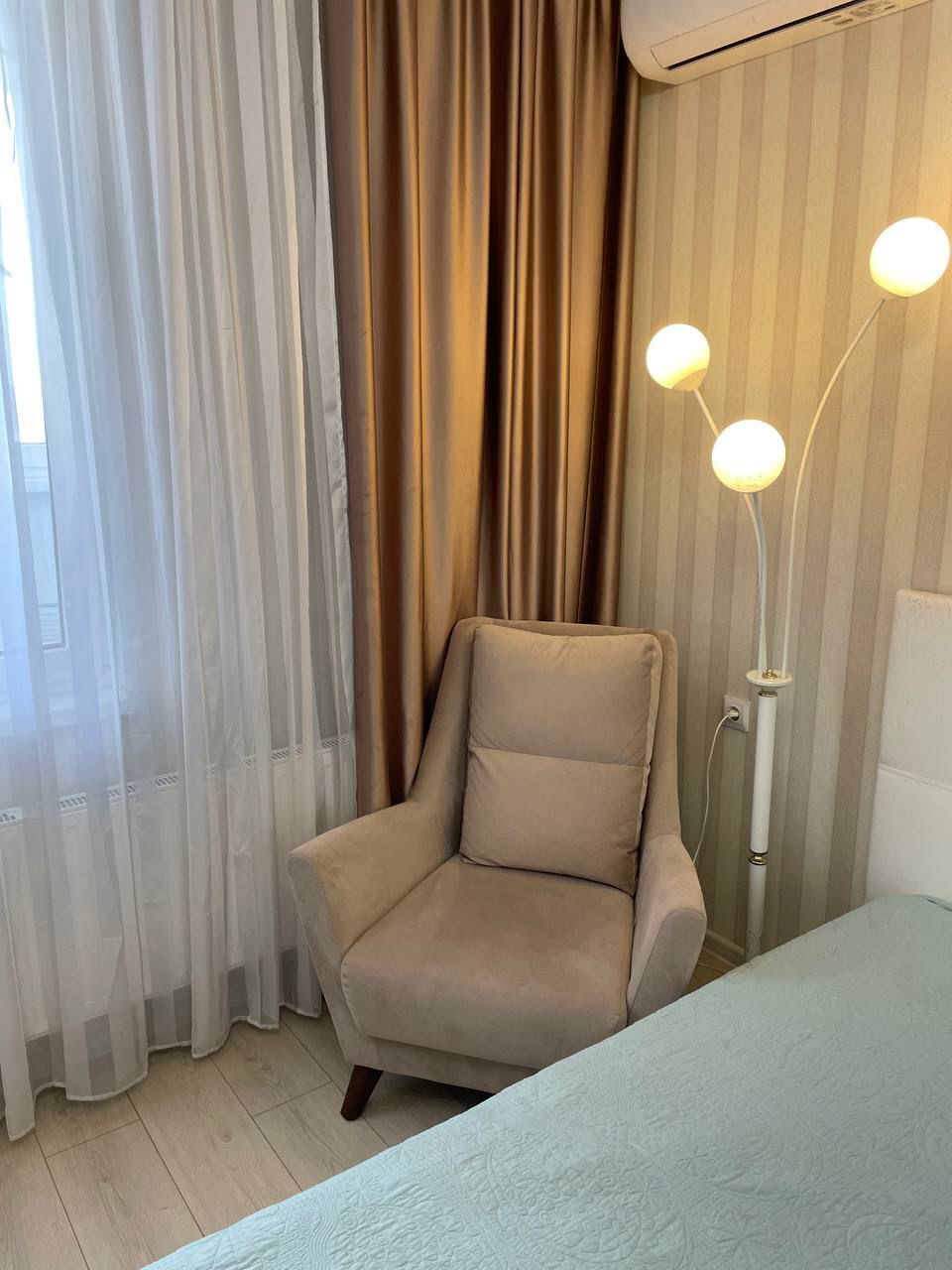 В комнатах и кухне установлены кондиционеры. Мебель остается.