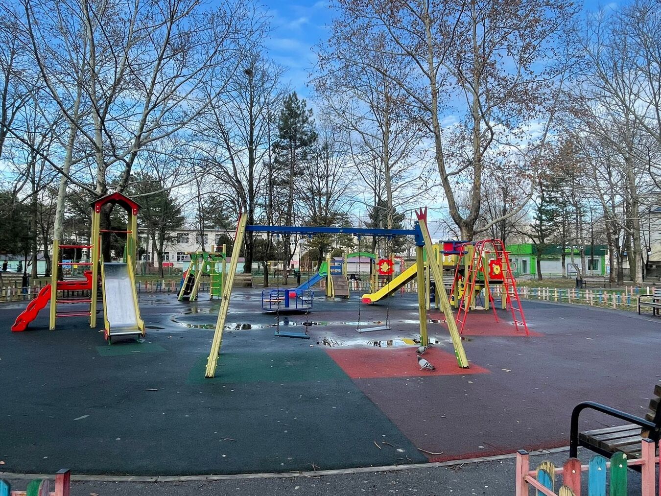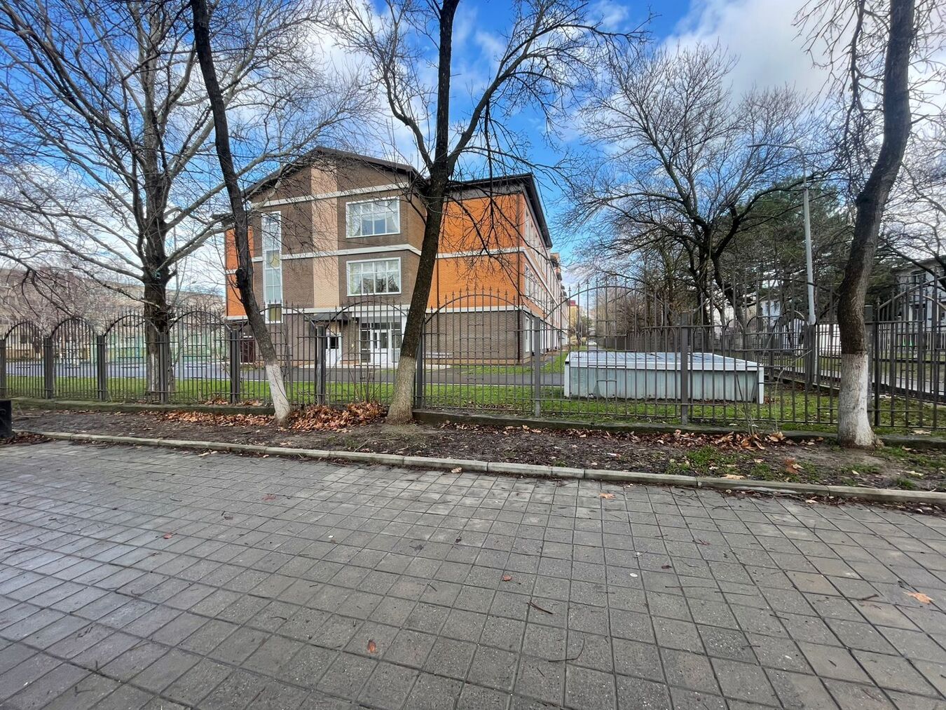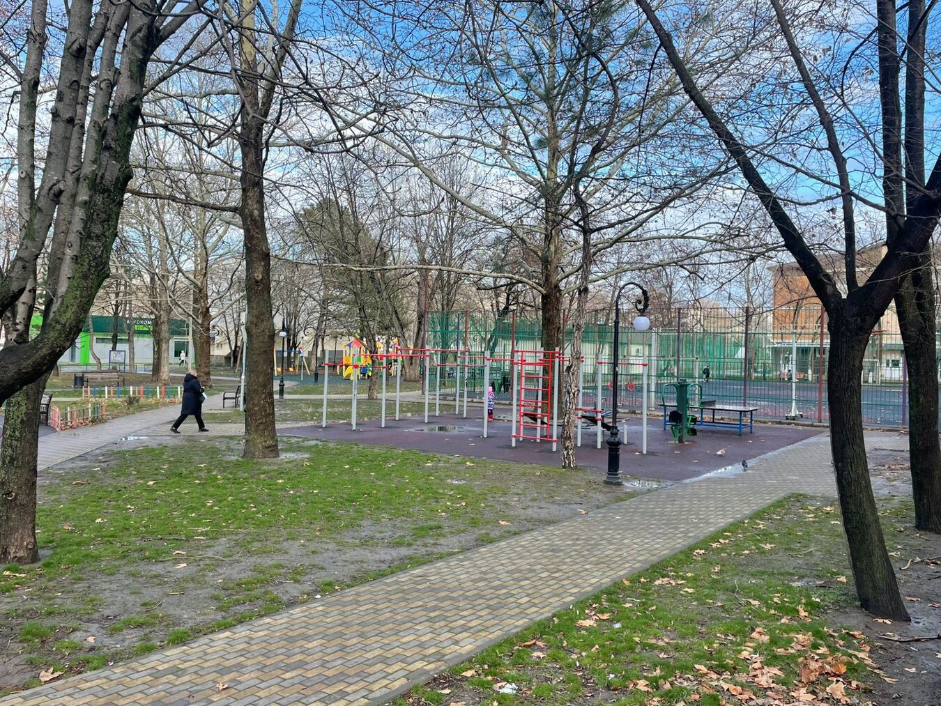 Во дворе находится детская игровая площадка, зона с тренажерами