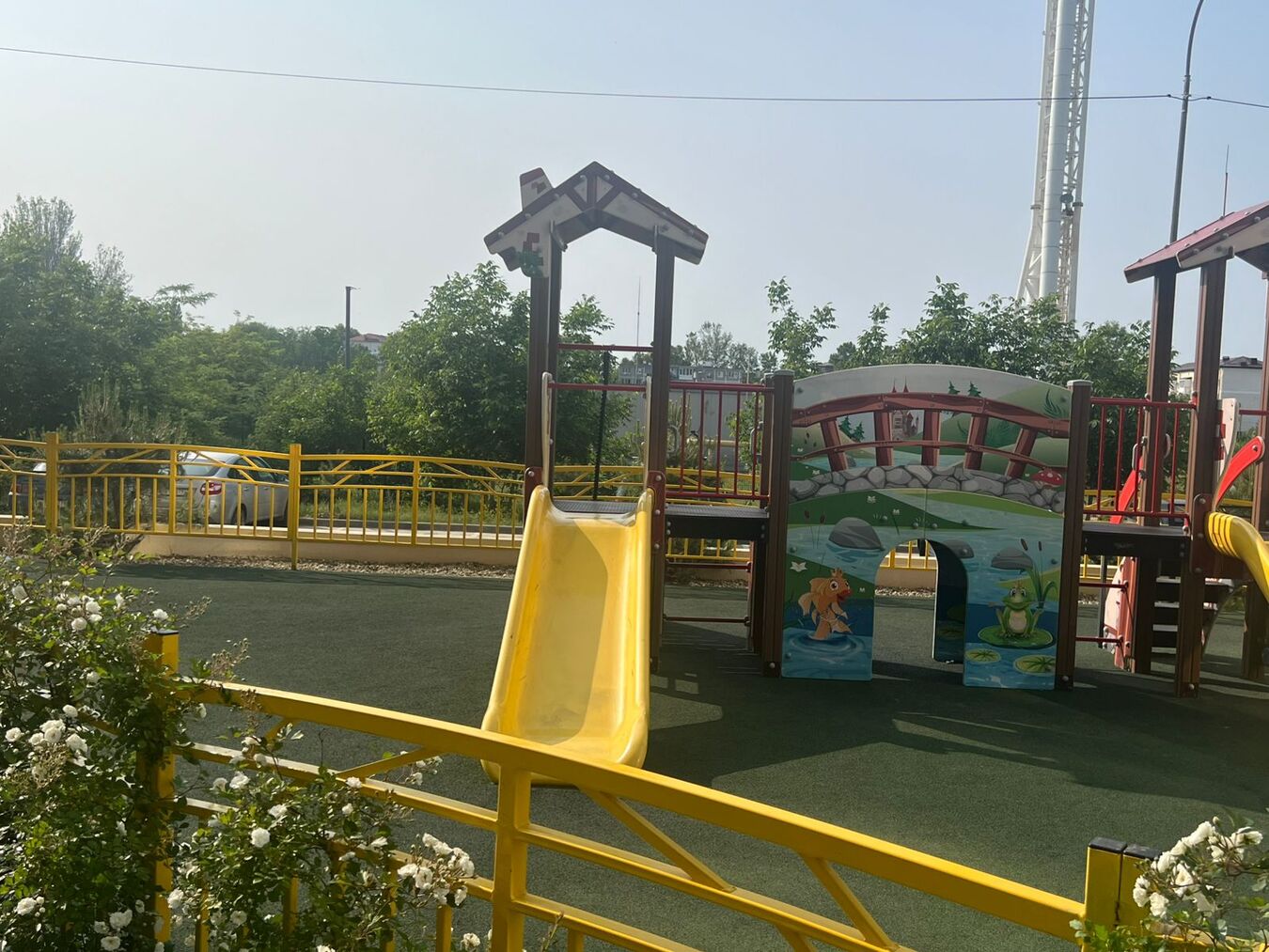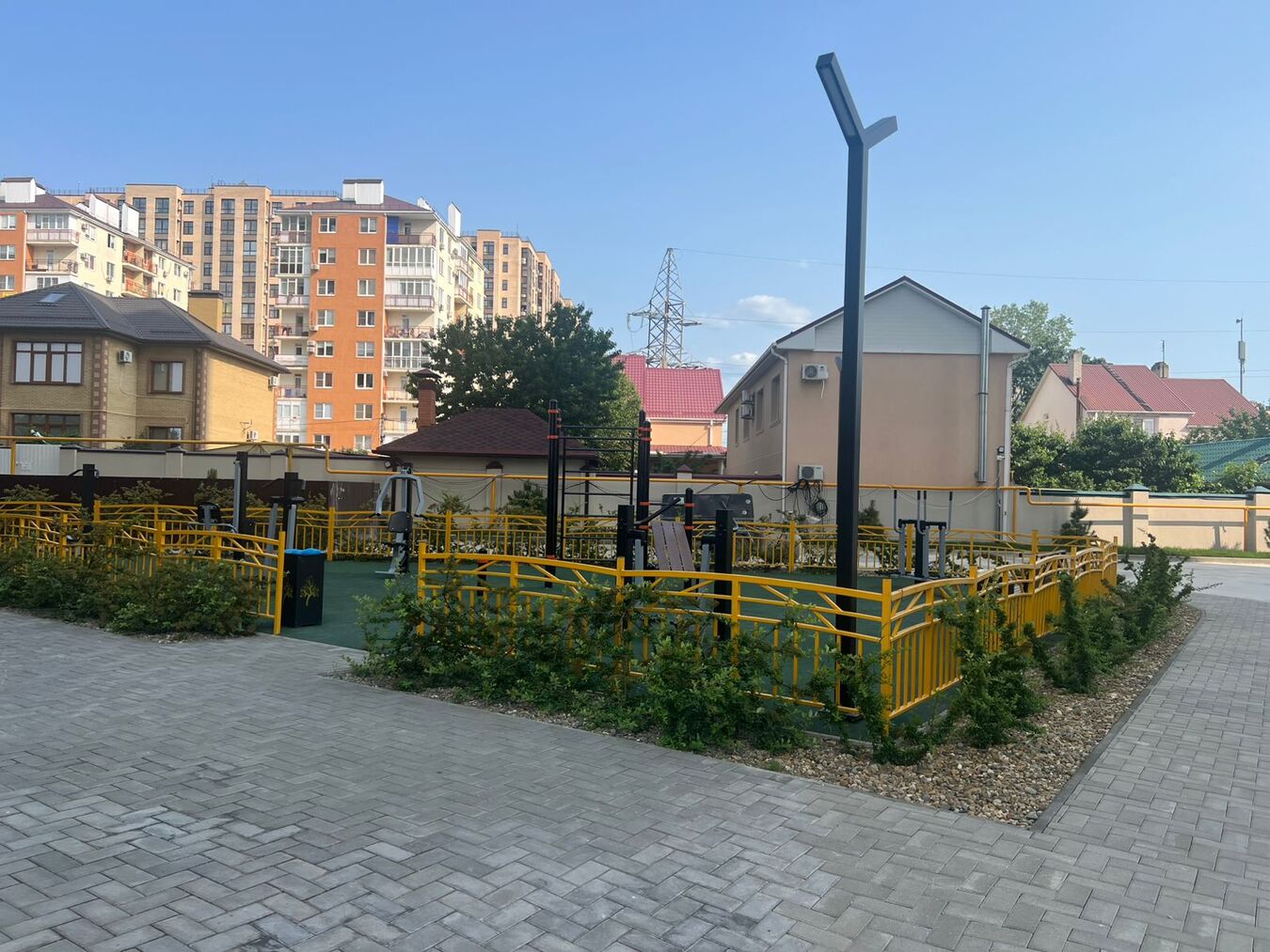 Около дома детская площадка, спортивная площадка, стоянка для автомобилей. В ЖК есть большое количество магазинов, в том числе развивающий центр для детей, парикмахерская, а также офис маркетплейса Озон.