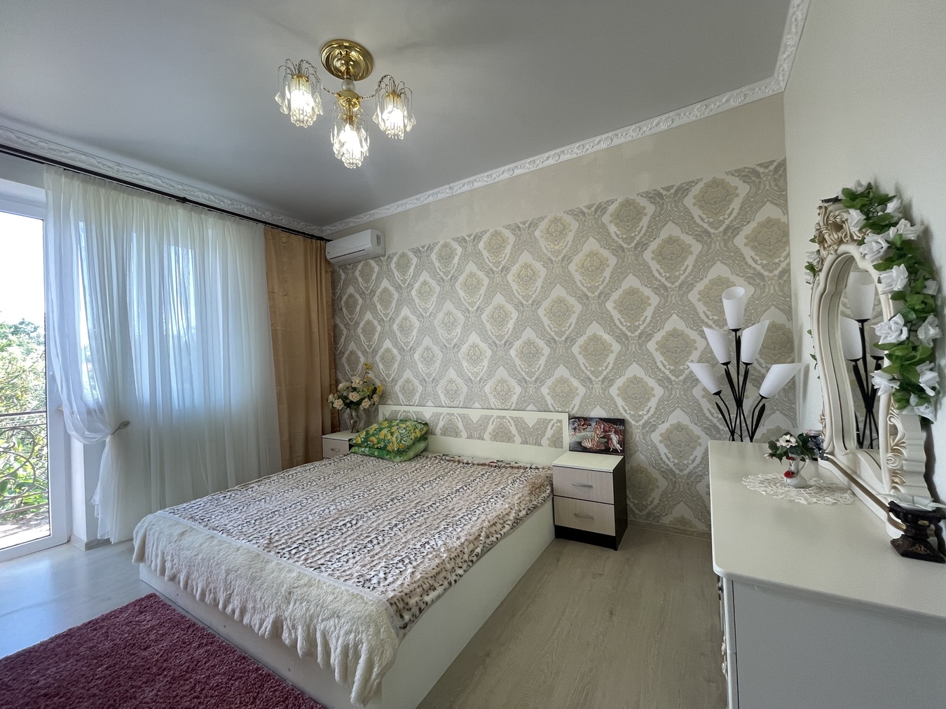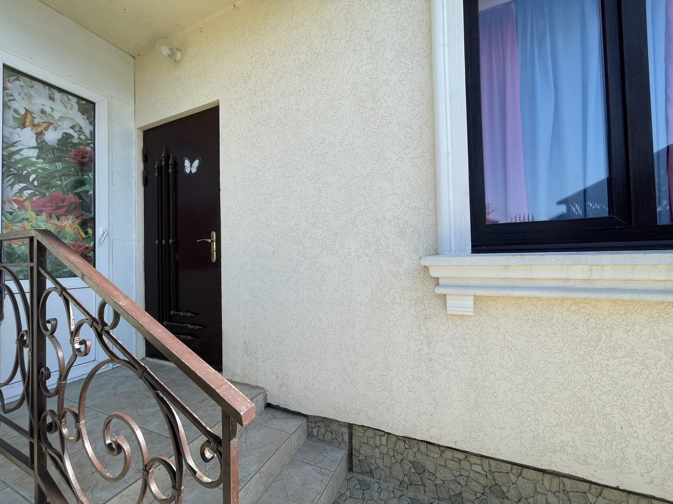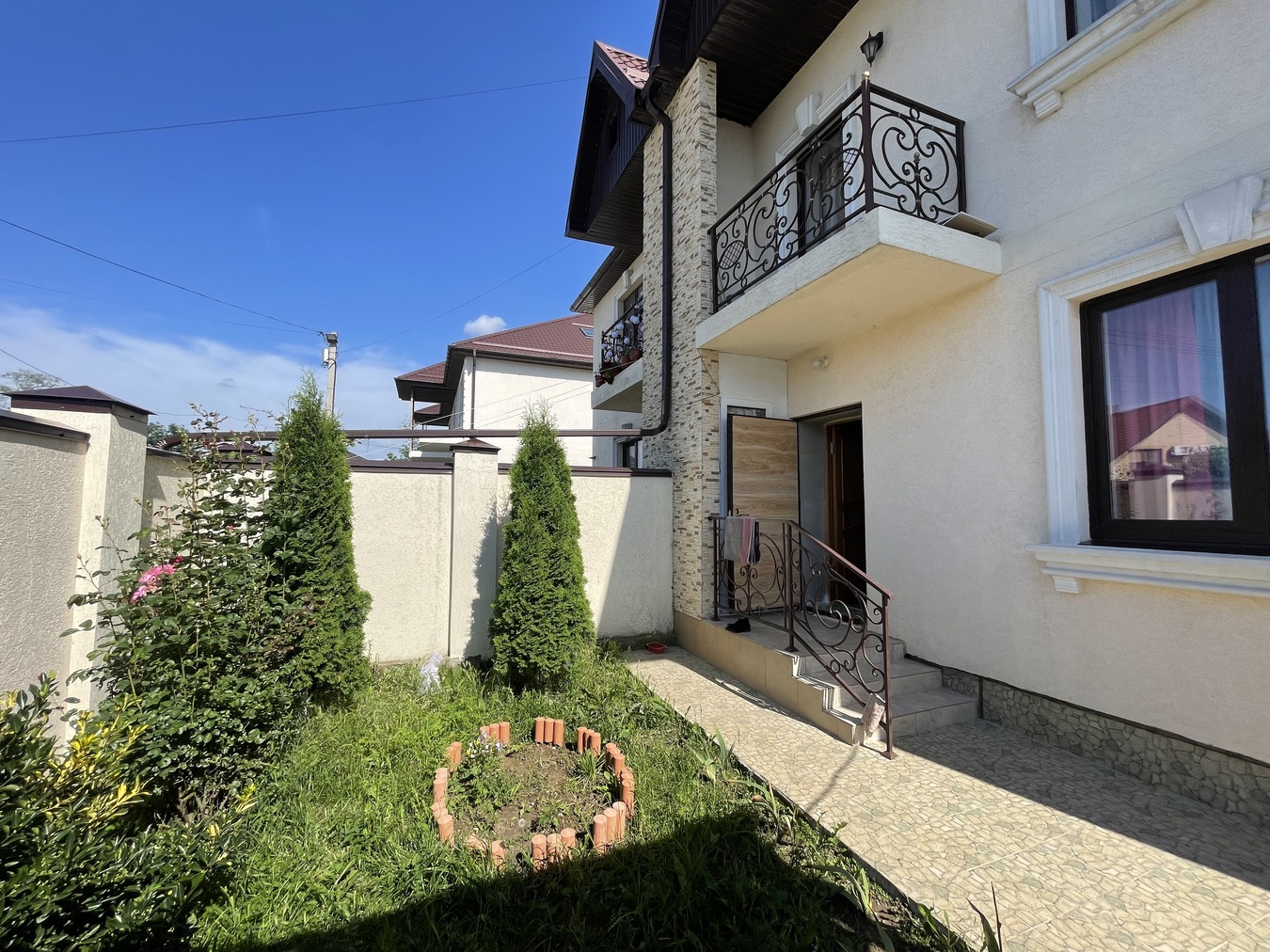 1 ЭТАЖ: 45 кв.м. : 1 комната, уютная большая гостинная, прихожая, отдельный сан.узел. 2 ЭТАЖ: 75 кв.м. - 3 раздельные комнаты с балконами, отдельный сан.узел с САУНОЙ! В доме сделан полностью ремонт: полы керамогранит, обои, натяжные потолки. Мебель и техника остаются! Во дворе - парковочное место для автомобиля, зона для отдыха, на участке растут плодовые деревья.