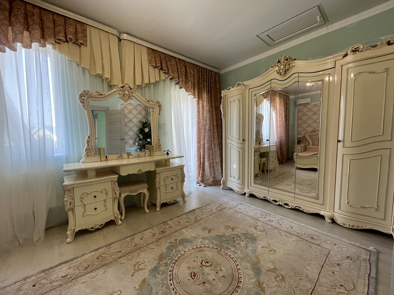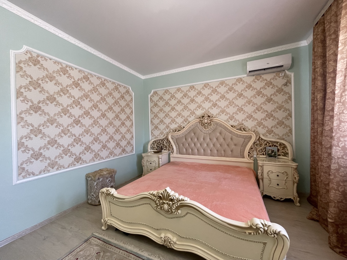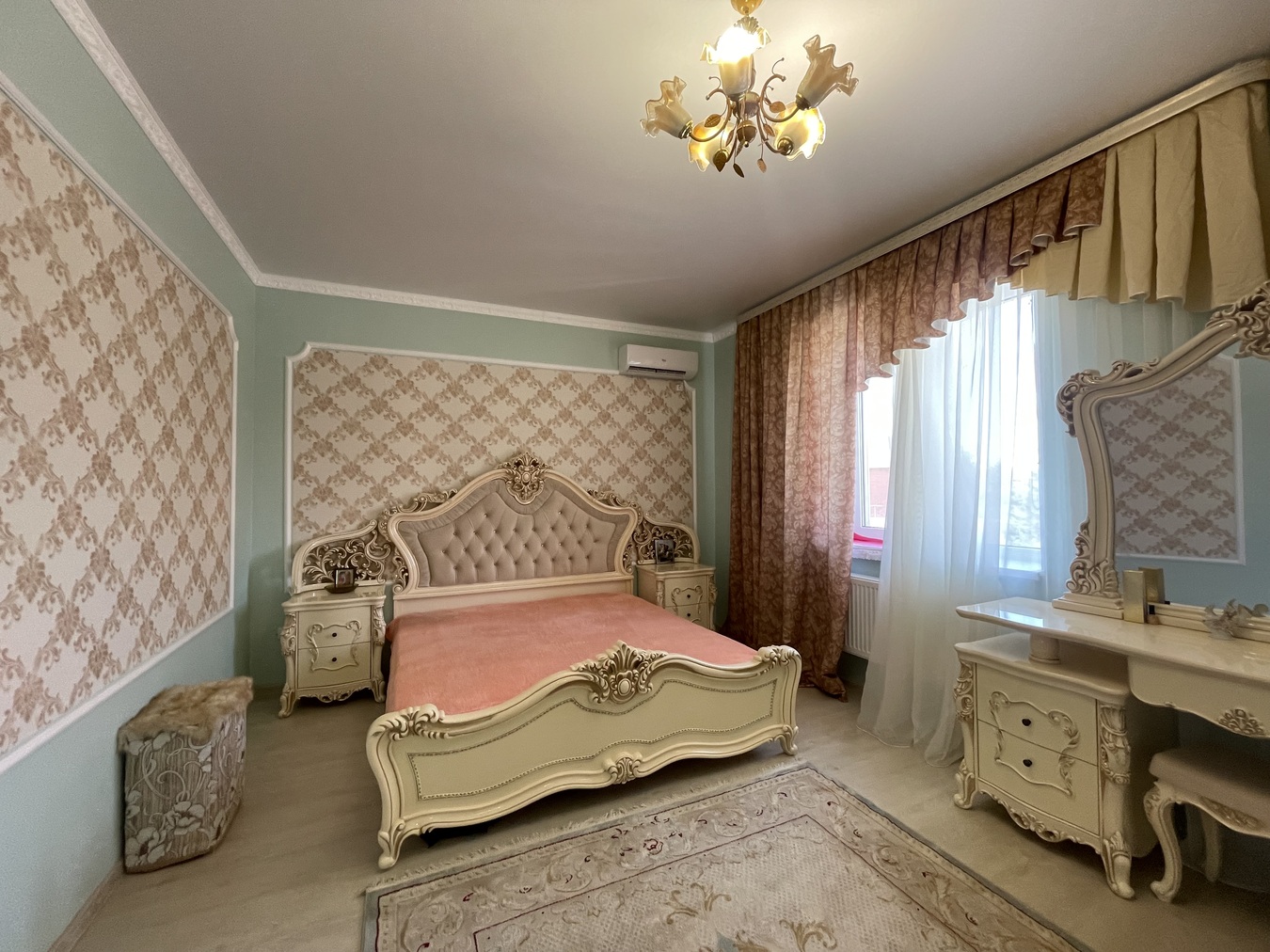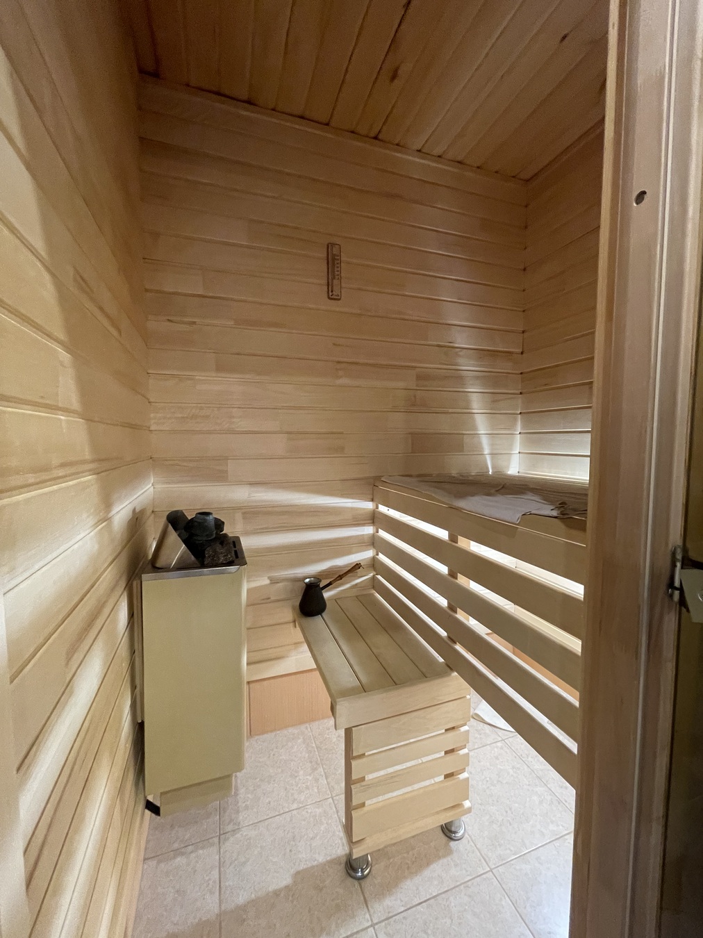 1 ЭТАЖ: 45 кв.м. : 1 комната, уютная большая гостинная, прихожая, отдельный сан.узел. 2 ЭТАЖ: 75 кв.м. - 3 раздельные комнаты с балконами, отдельный сан.узел с САУНОЙ! В доме сделан полностью ремонт: полы керамогранит, обои, натяжные потолки. Мебель и техника остаются! Во дворе - парковочное место для автомобиля, зона для отдыха, на участке растут плодовые деревья.