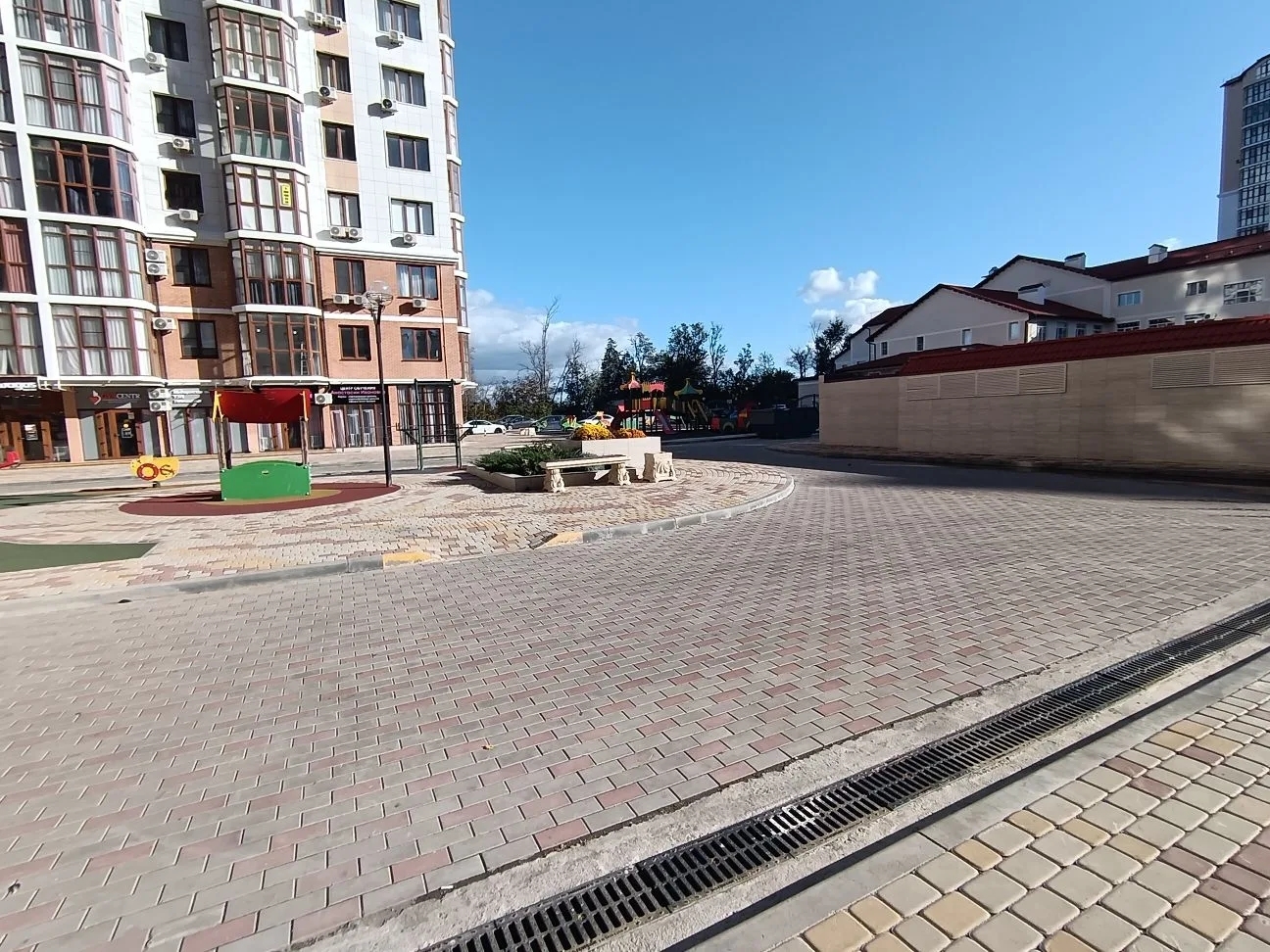 На территории комплекса расположено большое колличество кофеин, пунктов выдачи Ozon и Wildberries, Пятёрочка, Магнит Экстра круглосуточный, детский сад, строительные магазины, Вкусно и точка и многое другое.