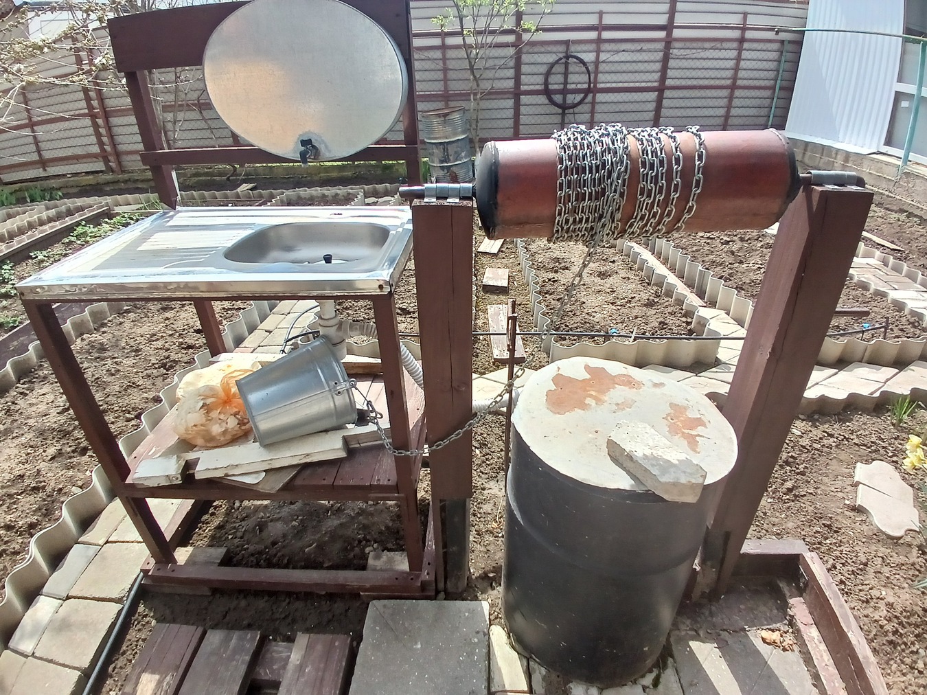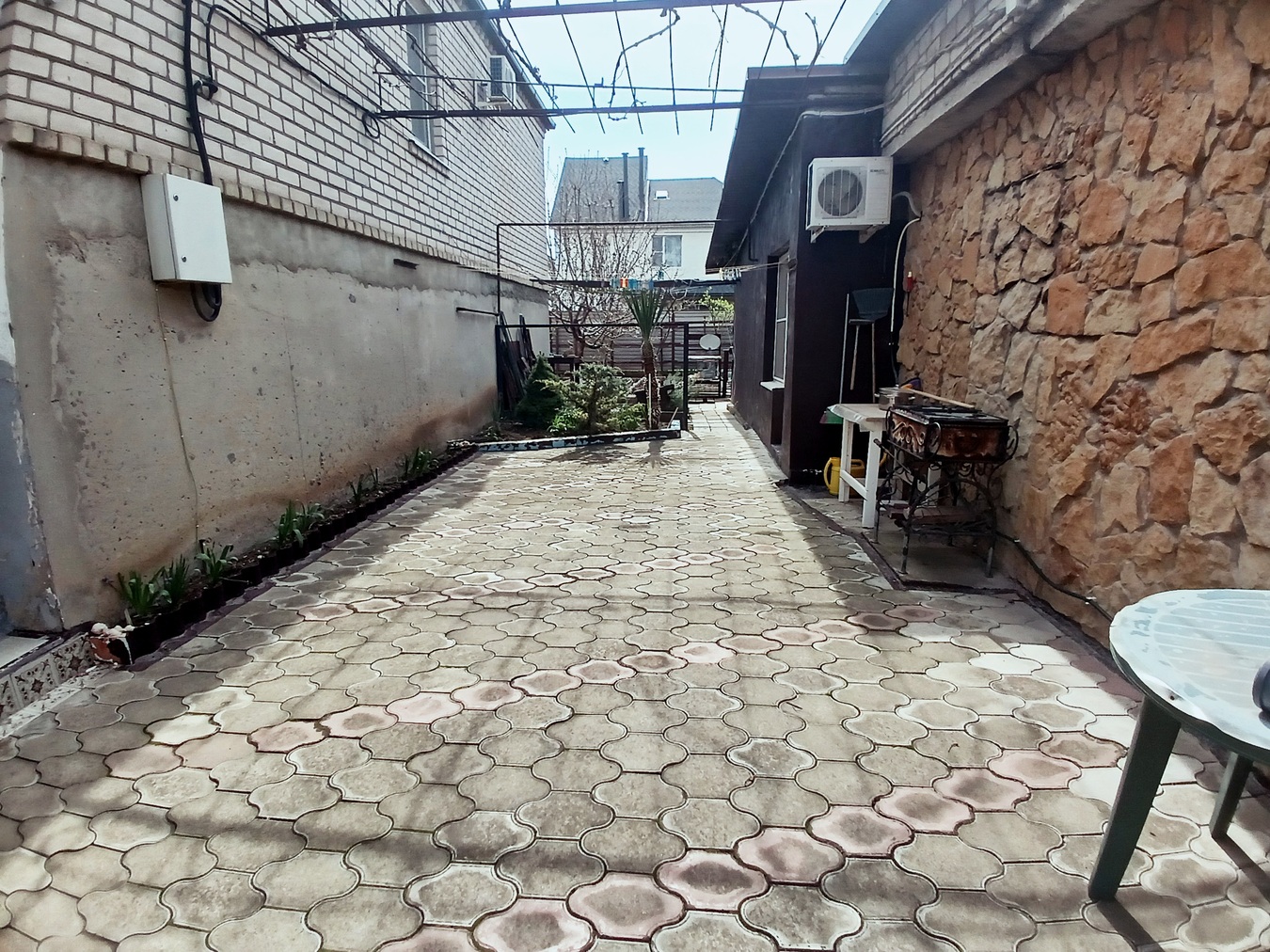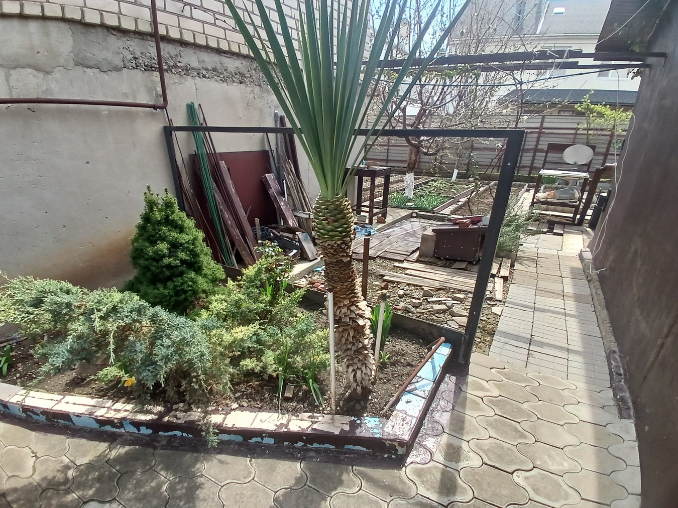 · В саду — черешня, инжир, виноград, розы. Земля плодородная, можно выращивать овощи.