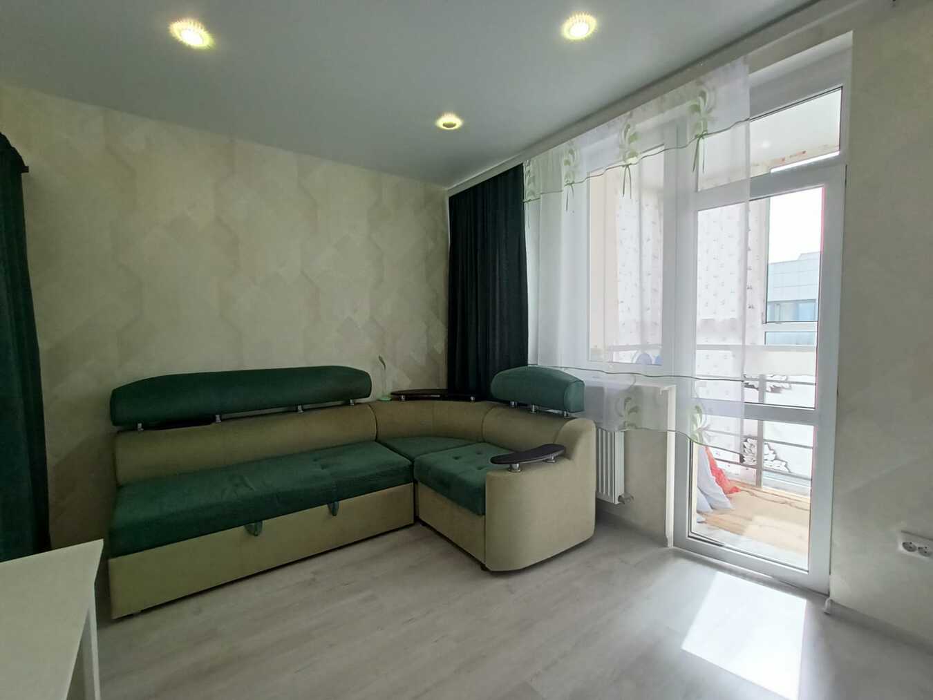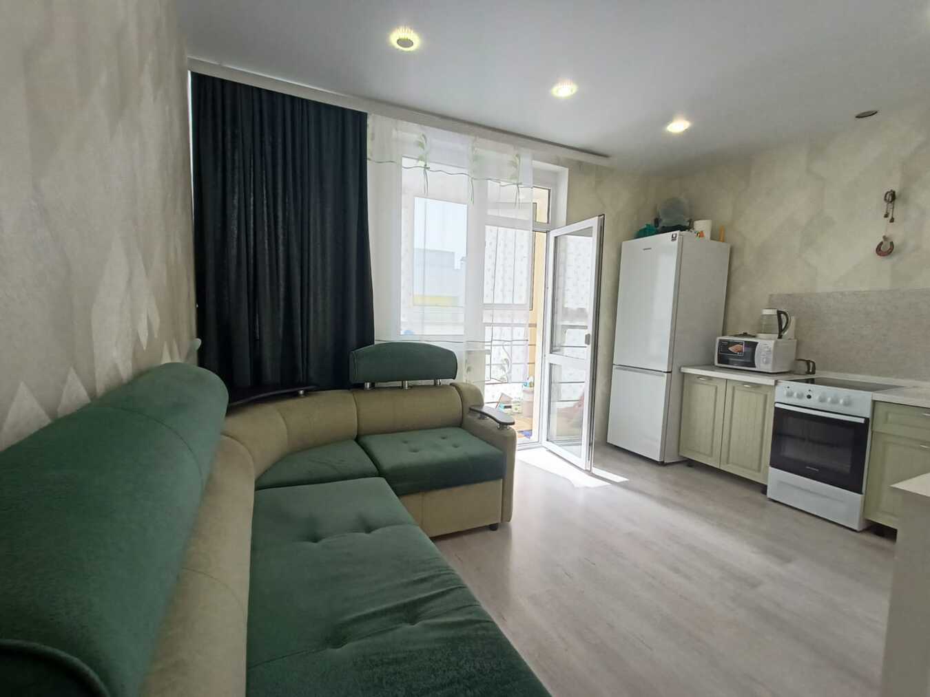 Квартира с большой вместительной кухней, как сейчас модно говорить - евродвушка,на которой прекрасно поместился диван.