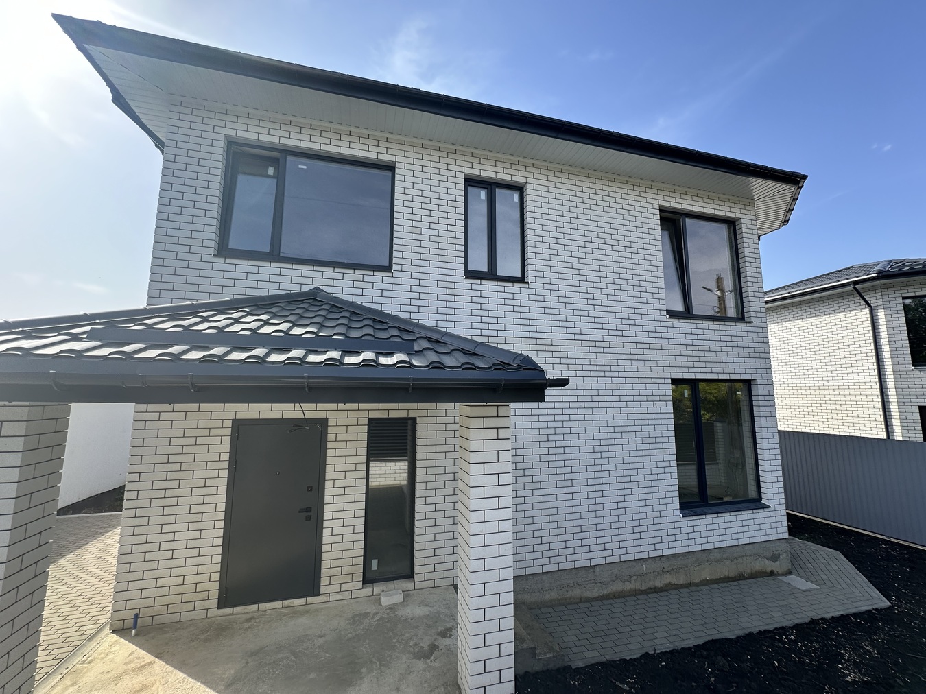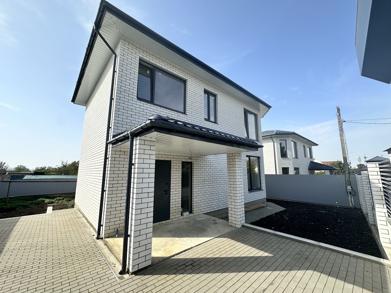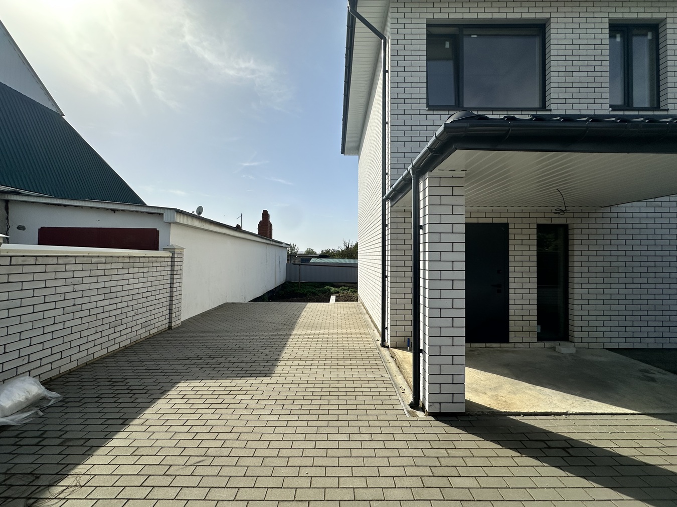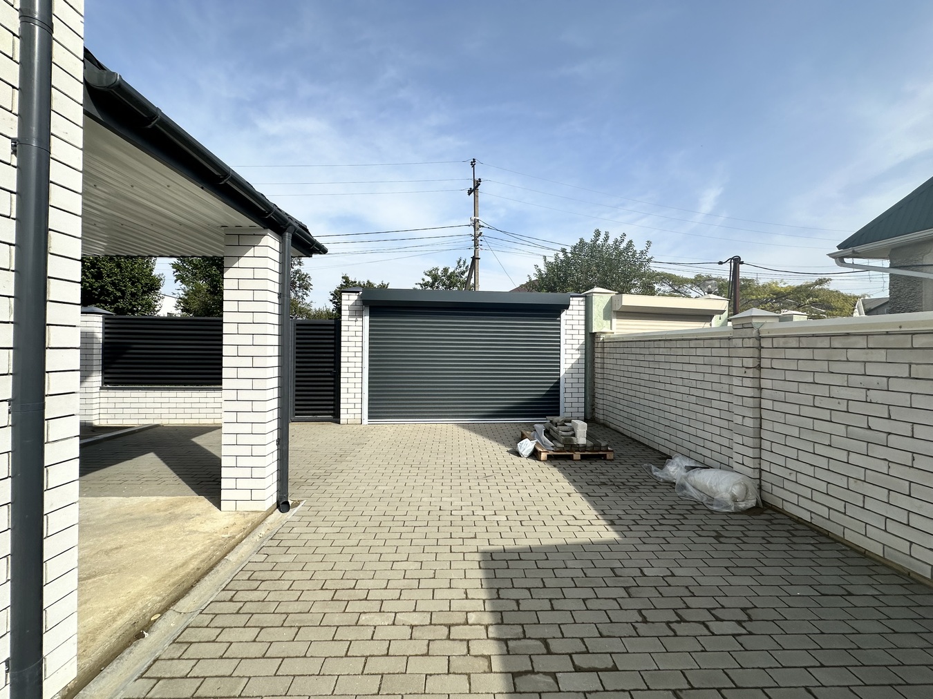 Плитка во дворе под 2 автомобиля.