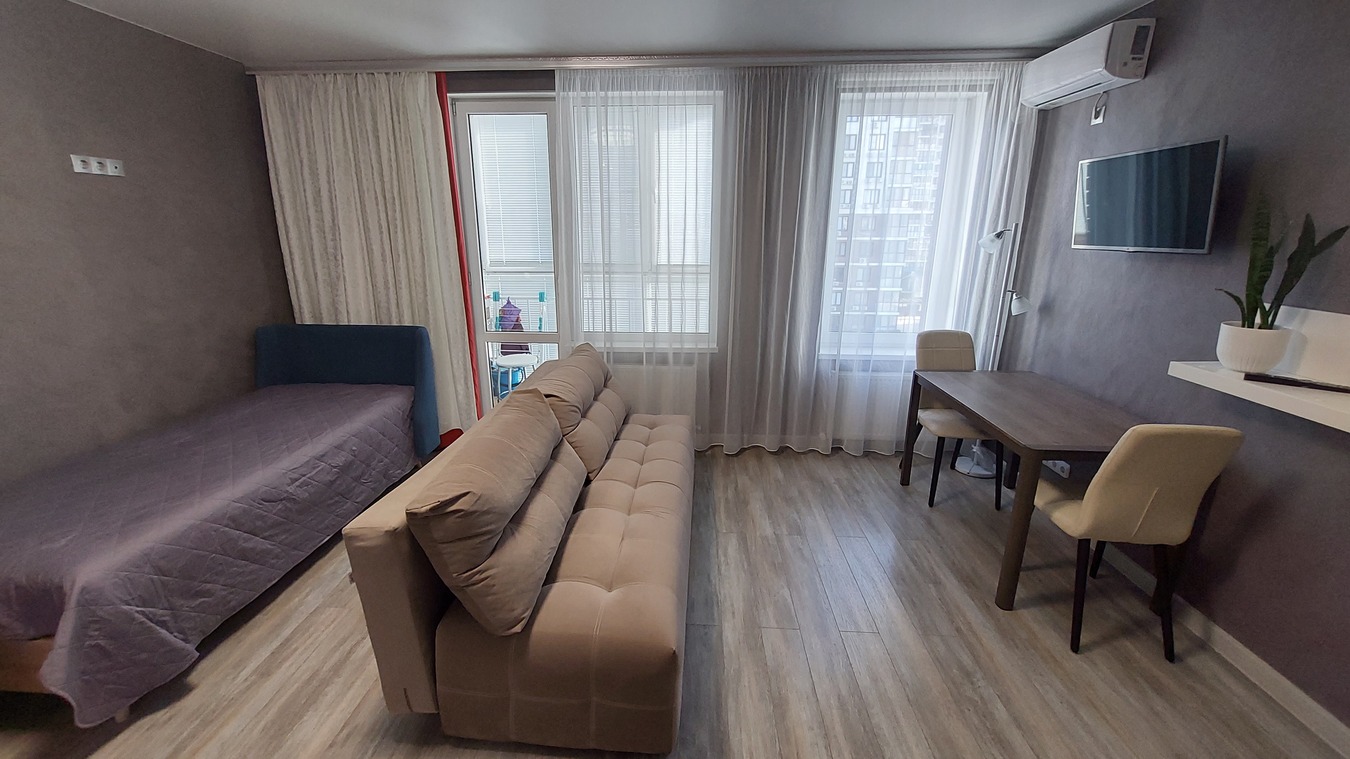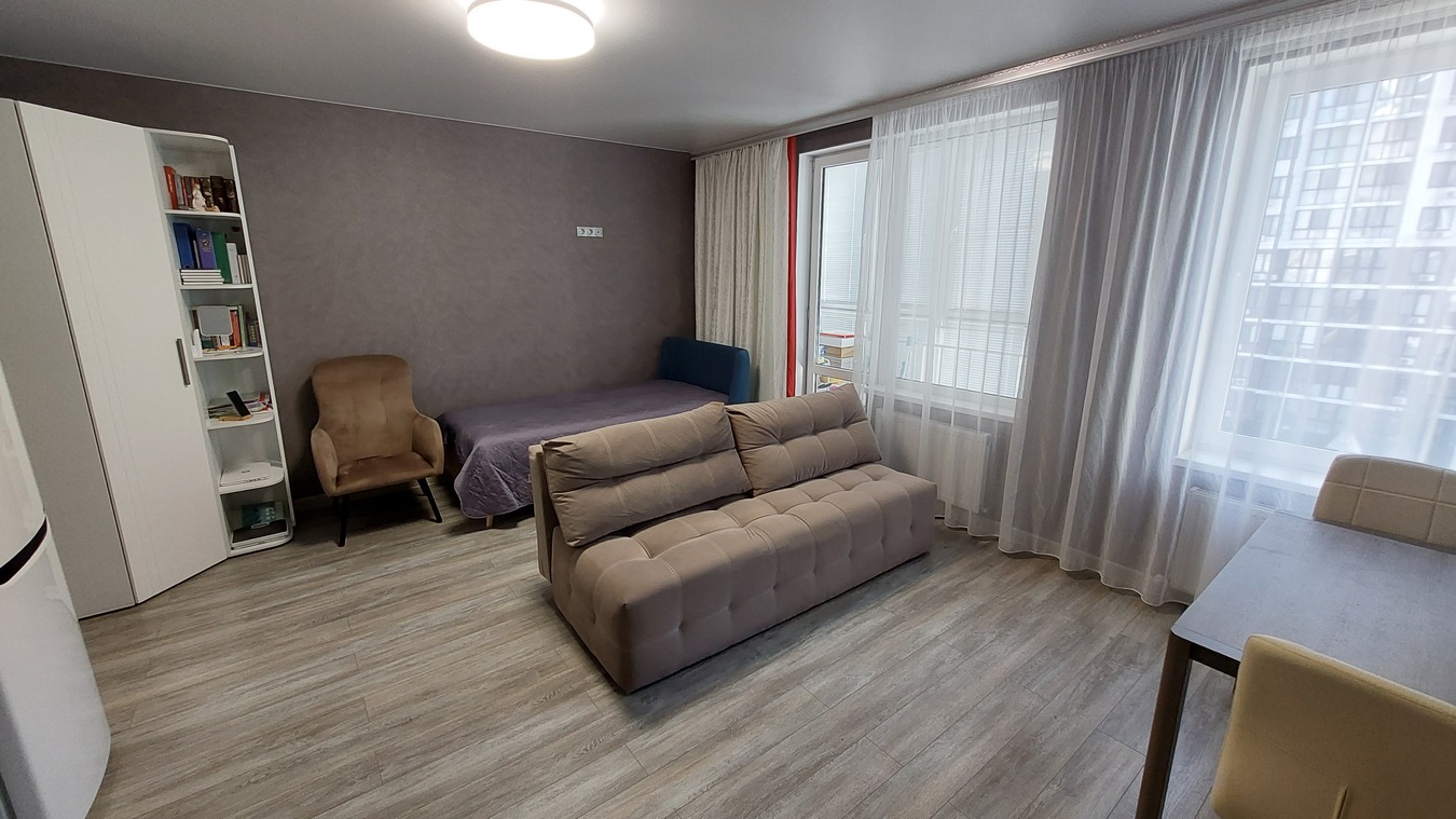 Квартира СТУДИЯ с двумя окнами, поставив перегородку можно сделать 1-комн. квартиру.
