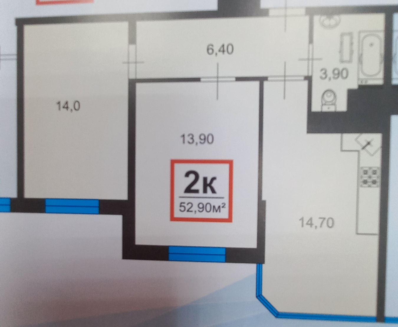 Две комнаты и кухня-гостиная.