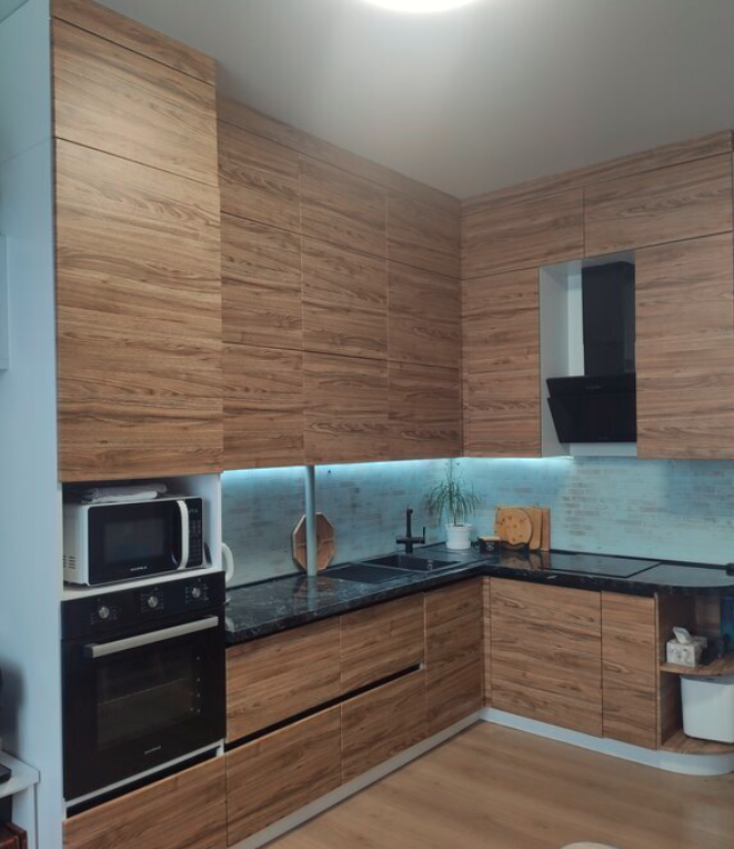 Установлен добротный кухонный гарнитур.