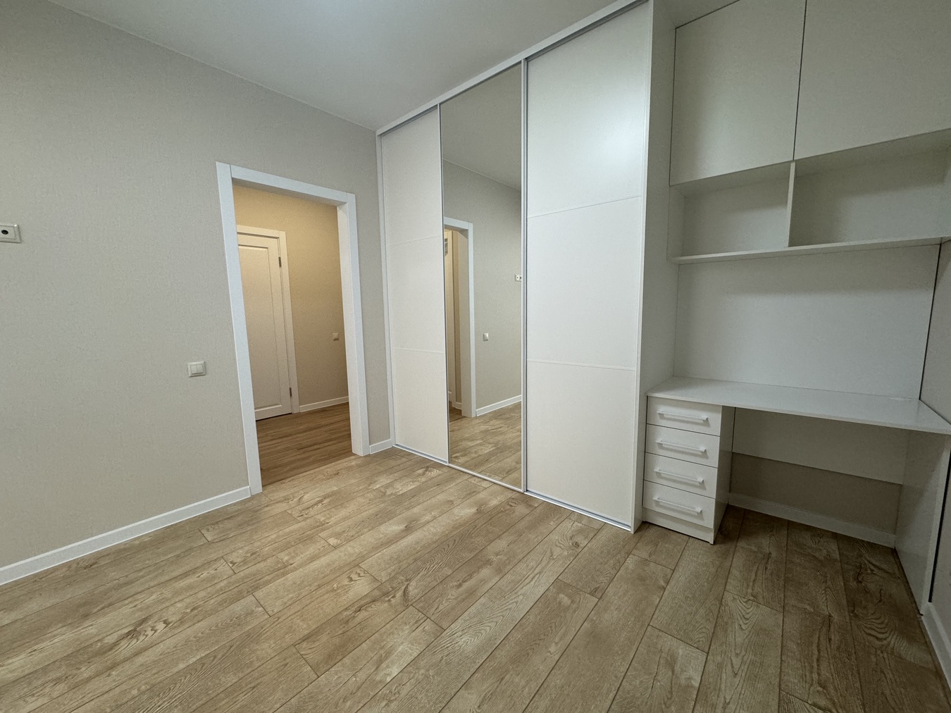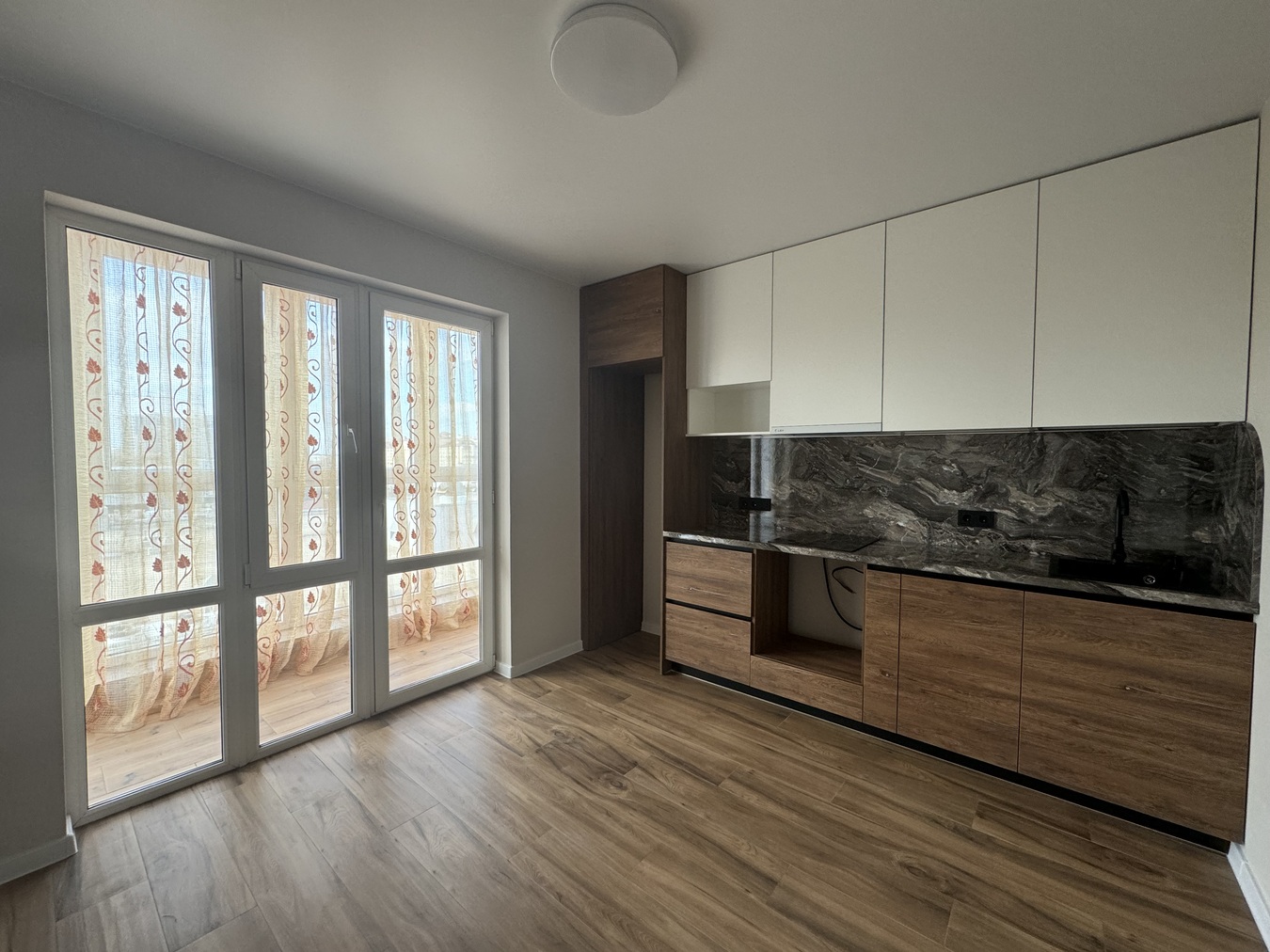 На кухне установлен новый кухонный гарнитур,спальня разделена на две зоны(рабочая и для отдыха),что очень удобно.
