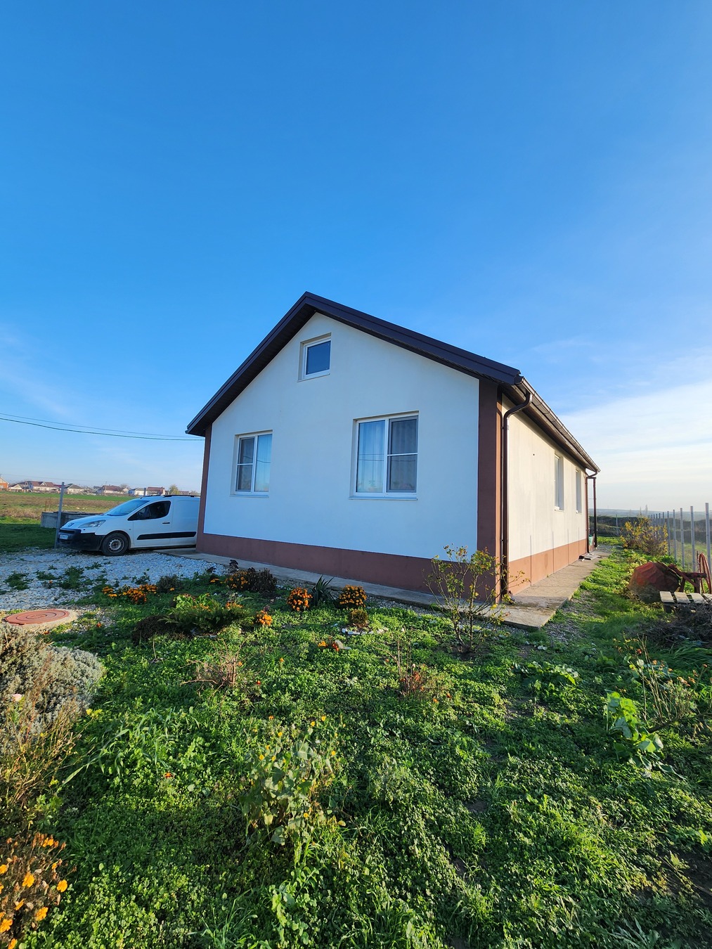 Дом состоит из трех комнат, бойлерная, сан.узел, гостиная, есть большая просторная терраса с замечательным видом.