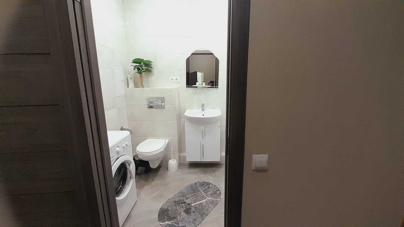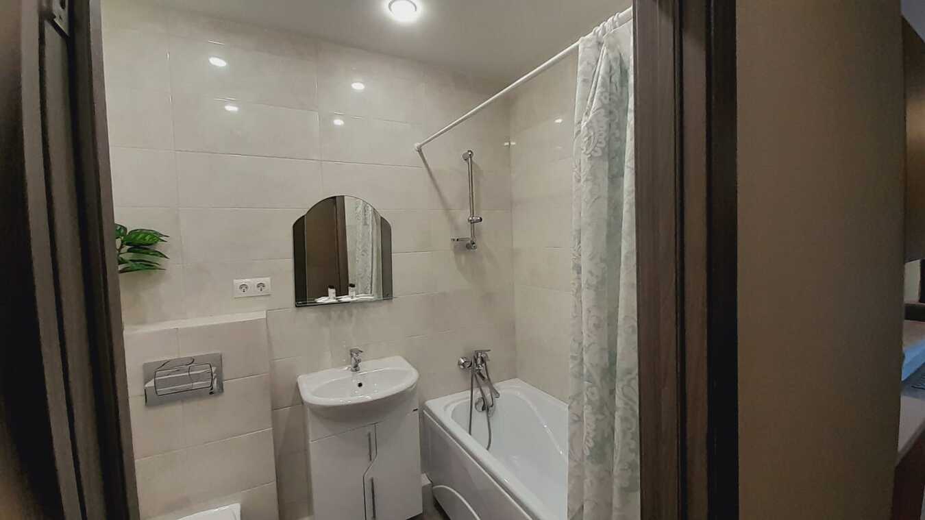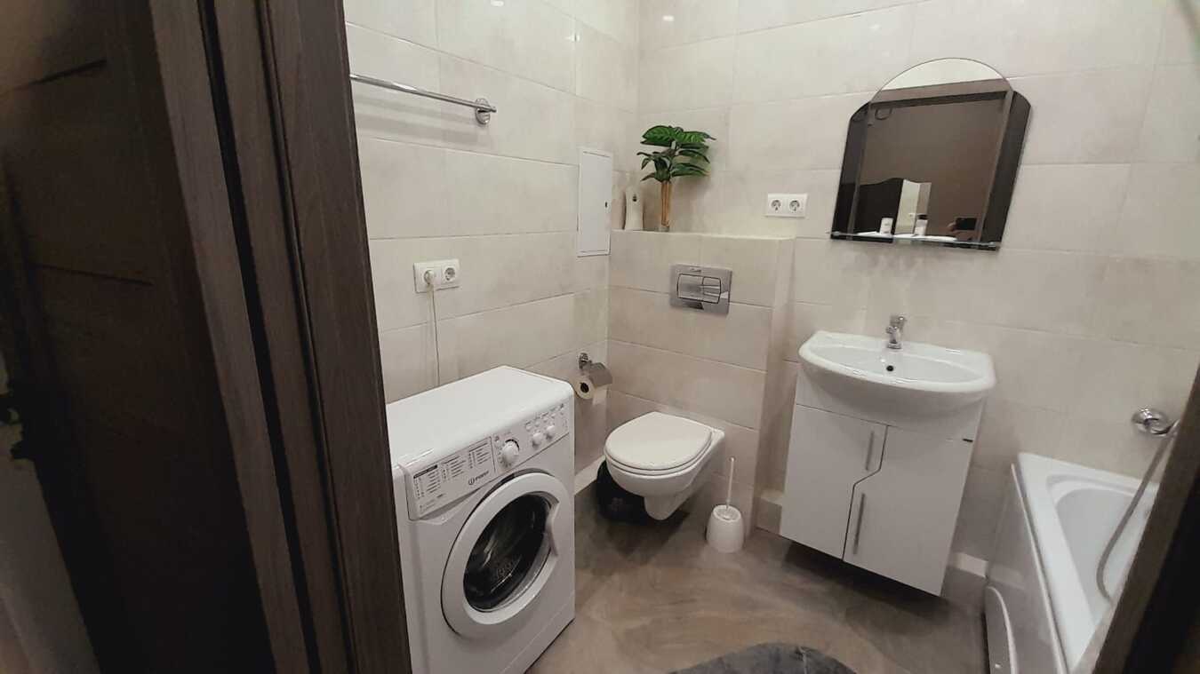 Стильное и функциональное решение. Полная меблировка и техника: · Кухонный блок: Вся необходимая мебель (стол, стулья, шкафы), холодильник, электрическая плита , вытяжка, необходимый набор посуды.Санузел: Совмещенный санузел с современной сантехникой, душевой кабиной или поддоном со стеклянной дверцей, полотенцесушитель, стиральная машина.
