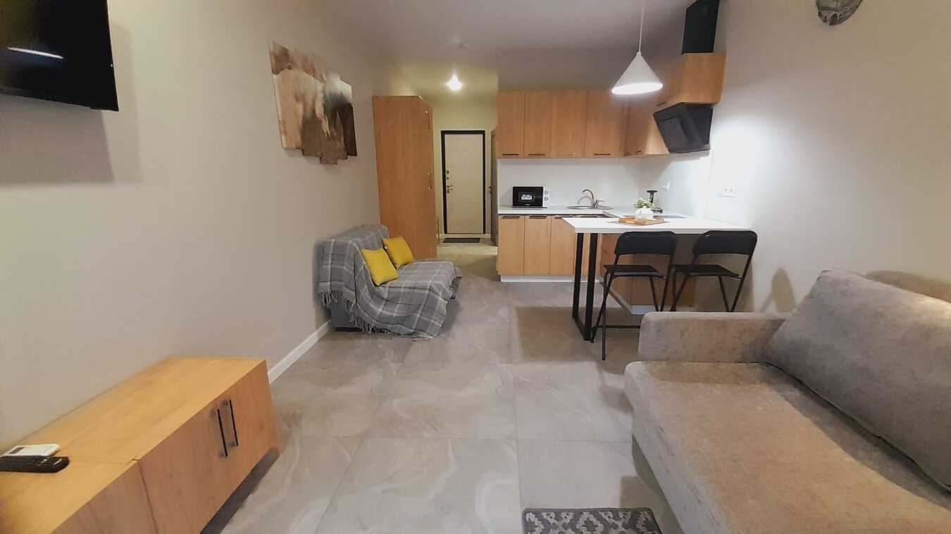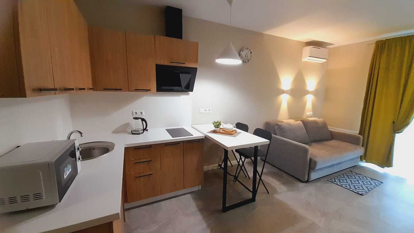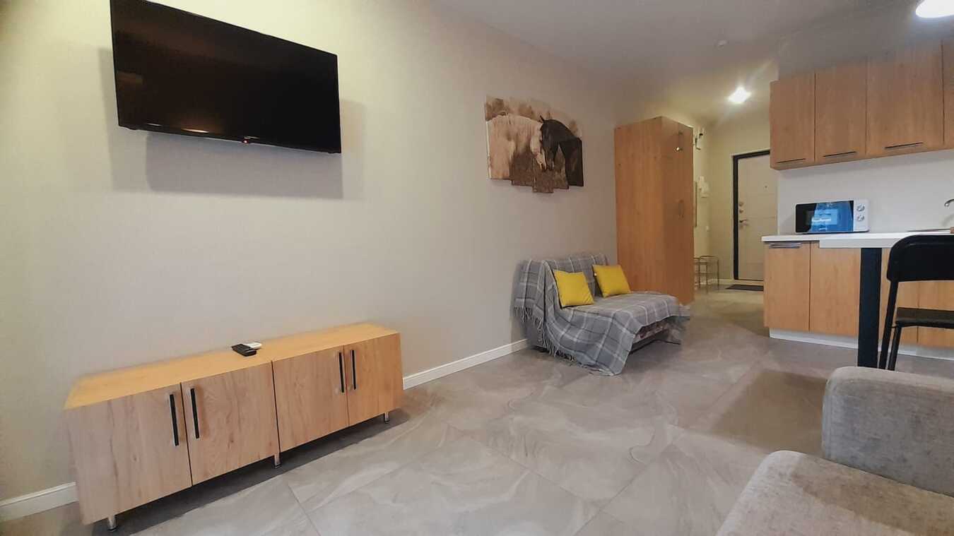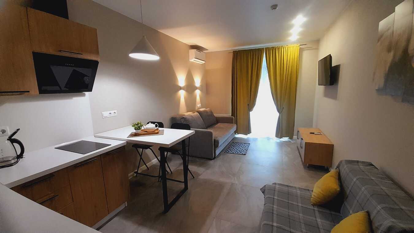 Идеальное предложение для инвестиций и отпуска! Готовая студия на 1-м этаже в 9-этажном доме. Заселяйтесь и начинайте зарабатывать! Этаж: 1 из 9. Удобно заселяться и выселяться, не нужно ждать лифта с багажом. Евроремонт, полностью меблирована и оборудована для комфортного проживания и сдачи. Вид объекта: Аппарат (многоквартирный жилой дом с юридически оформленными помещениями под гостиничный бизнес).