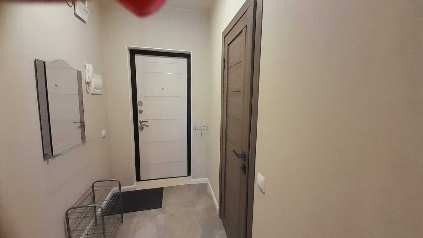 Современный ремонт: Качественная чистовая отделка: натяжные потолки со светодиодной подсветкой, современные обои или декоративная штукатурка, керамическая плитка в санузле и на кухонном фартуке, ламинат в жилой зоне.