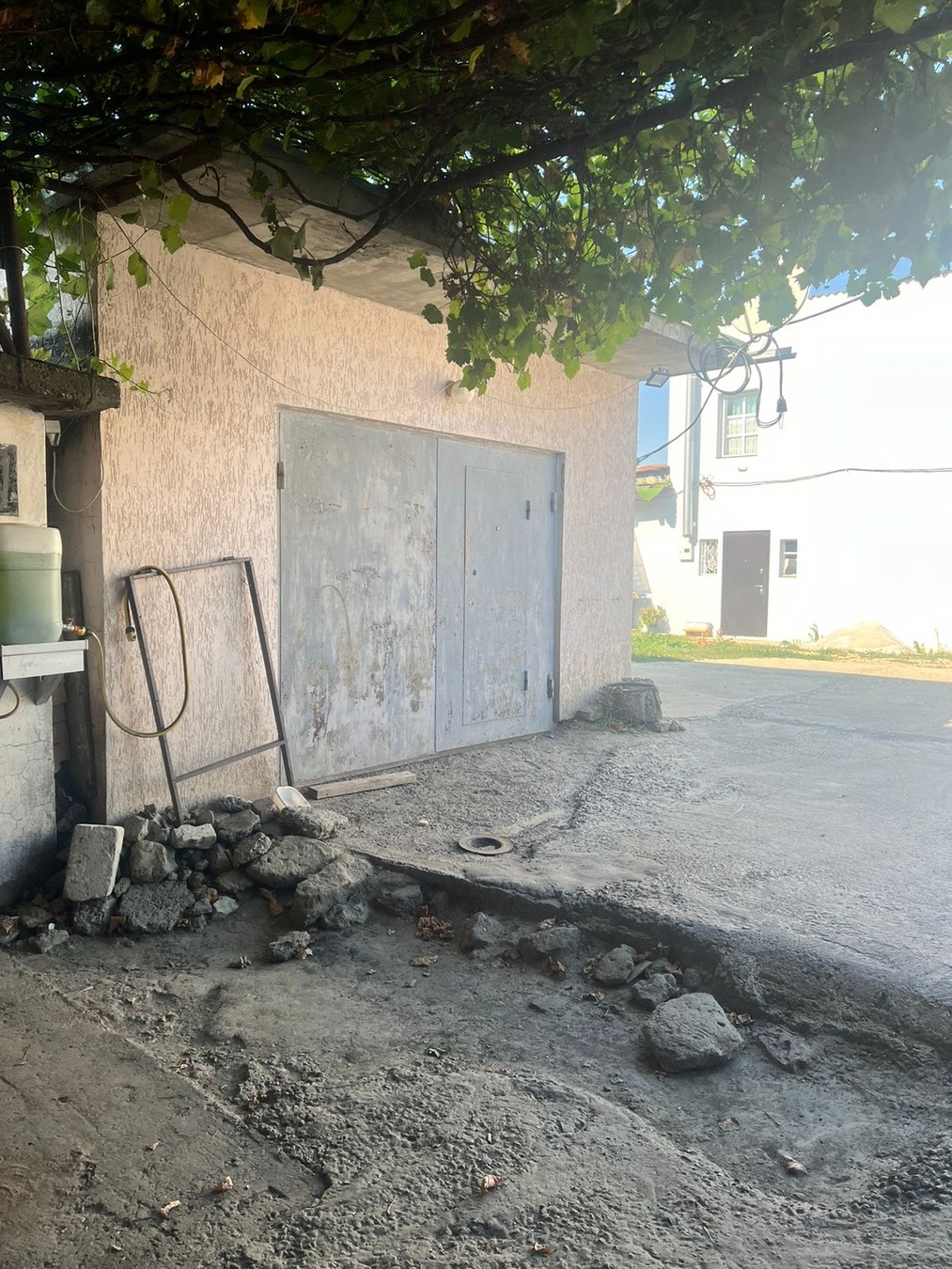 Стены внутри гаража отштукатурены, покрашены