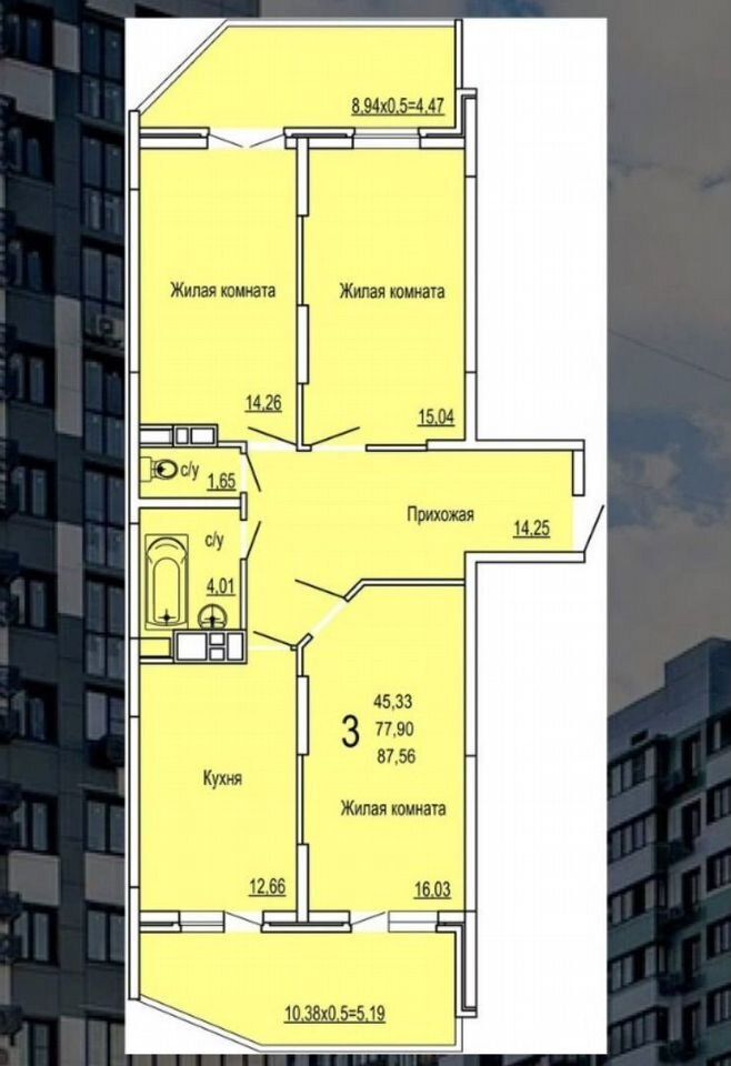 Распашонка Три изолированных комнаты Раздельный санузел Два балкона