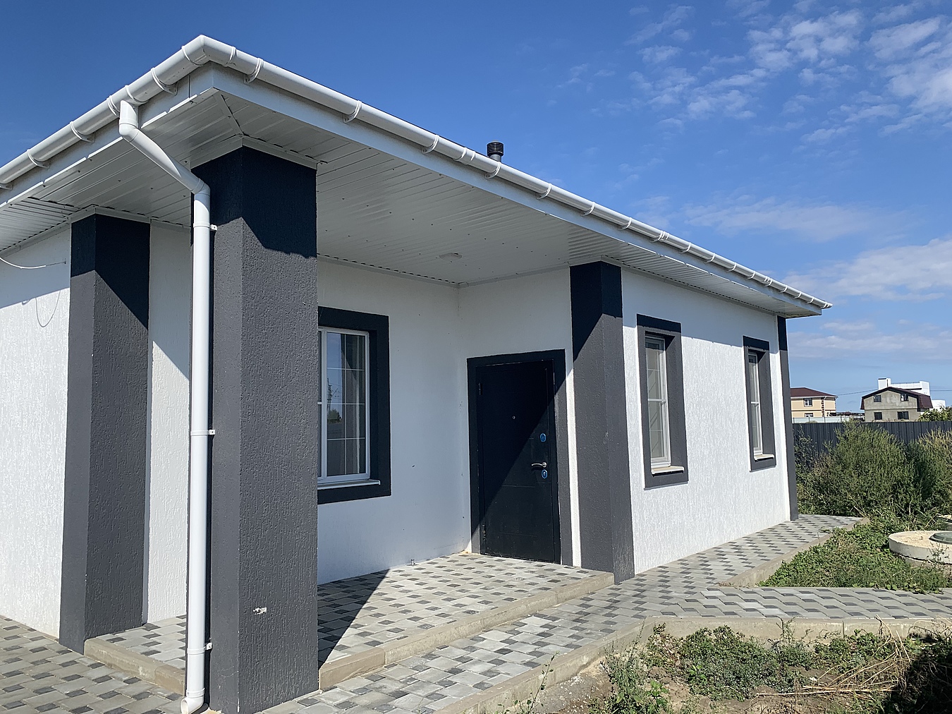 Продаю Новый дом в посёлке Витязево. В 15 минутах от моря. Строительство по всем нормам и стандартам. Хорошая входная дверь, выход на веранду. Двор облагорожен плиткой. Свет - 15 кВт, тёплые полы по всему дому, скважина - 45 метров, переливной септик. С предчистовой отделкой. Профессиональная автоматическая вентиляция. Отвечу на вопросы по телефону. Торг. ГАЗ! В шаговой доступности магазины, школа и садик.