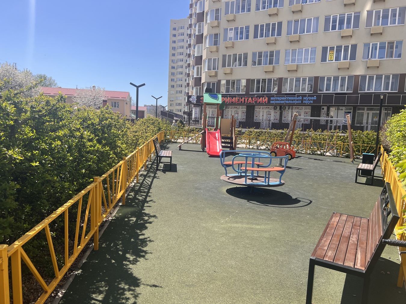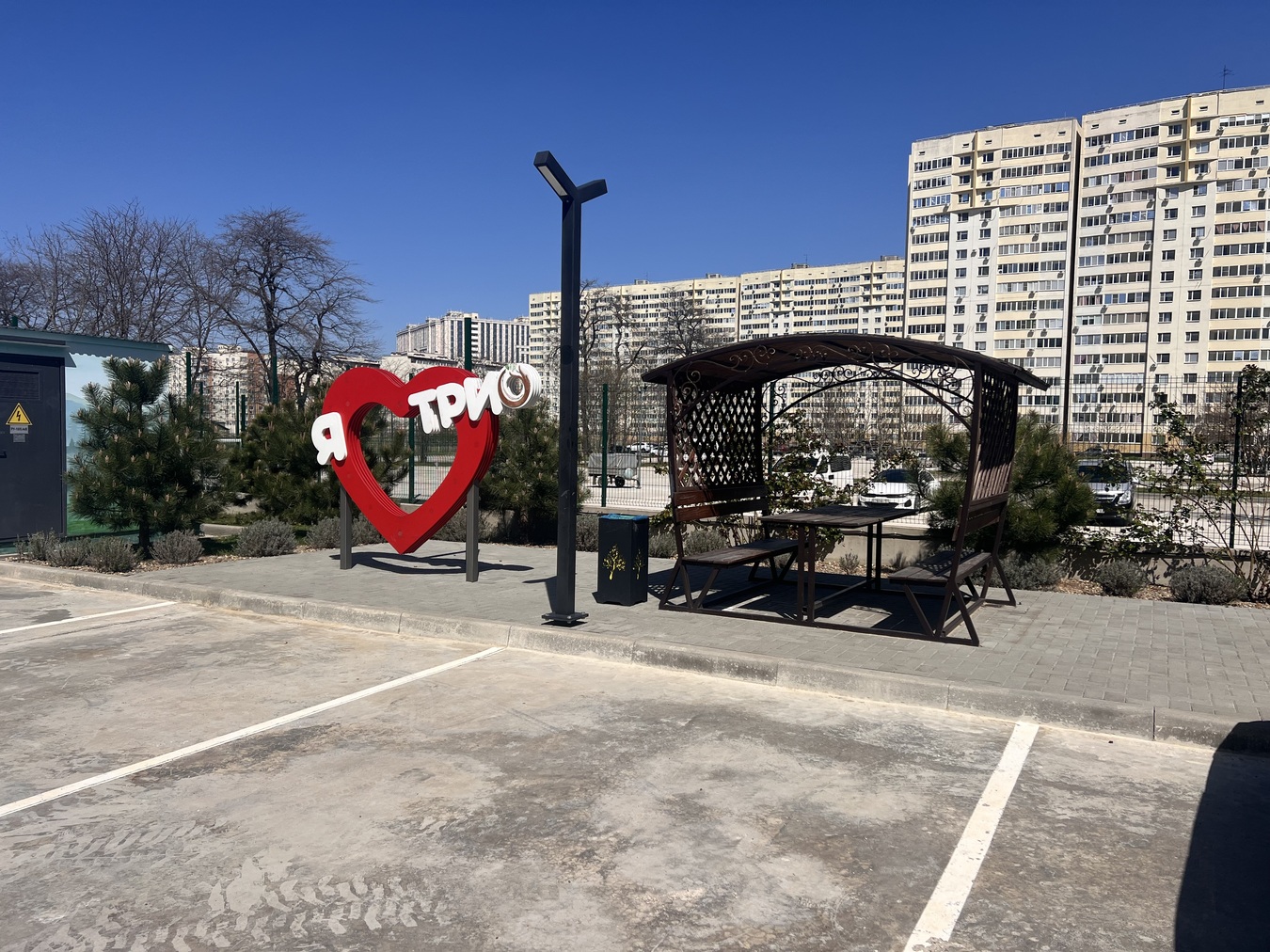 Новый современный ЖК «Трио-Комфорт». Закрытая облагороженная территория, оборудованные детские и спортивные площадки. Закрытая территория, уютные беседки. Большое количество свободных парковочных мест.
