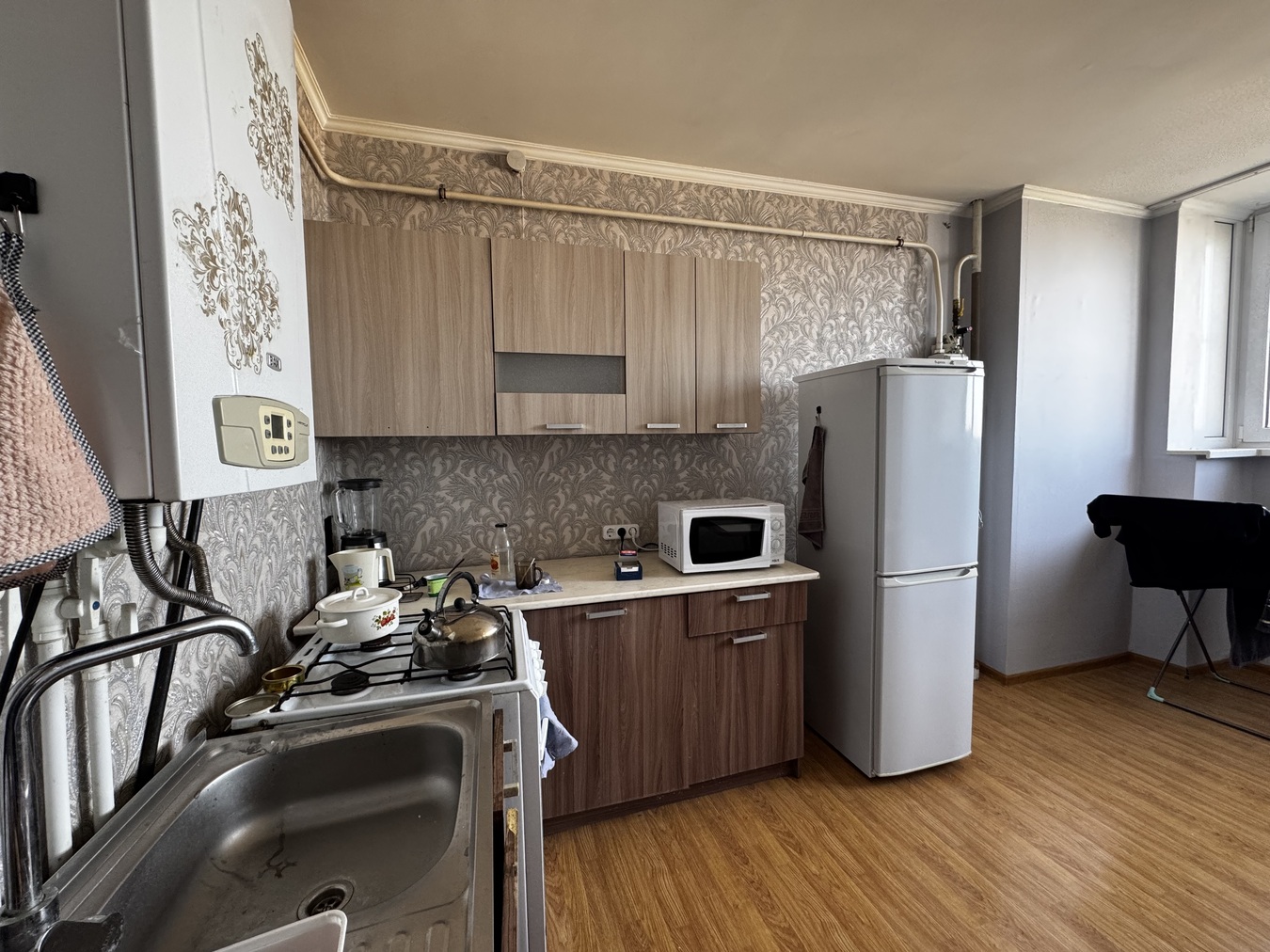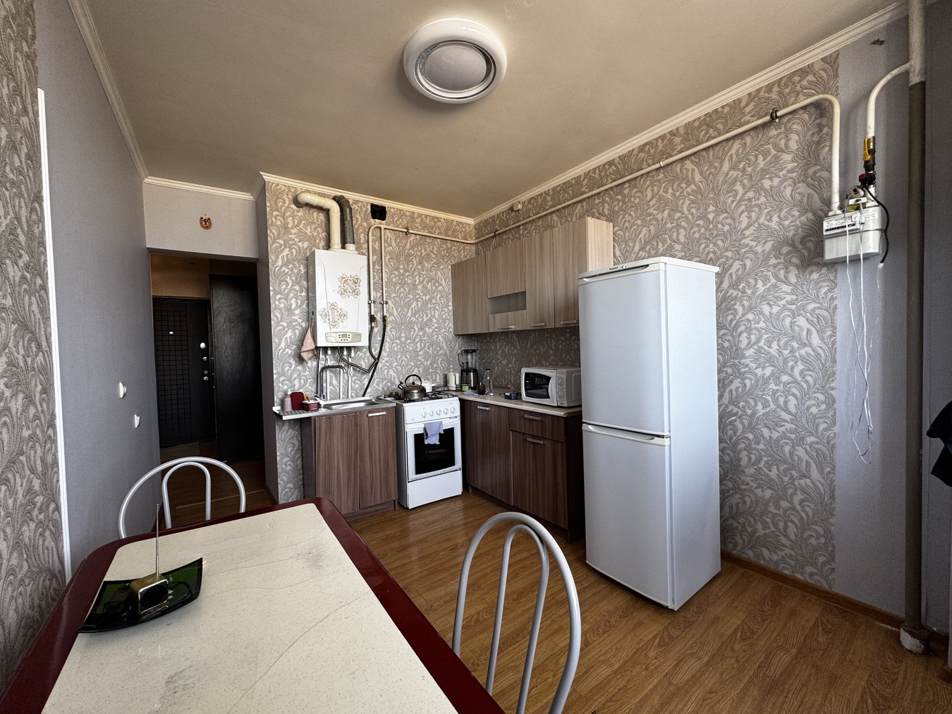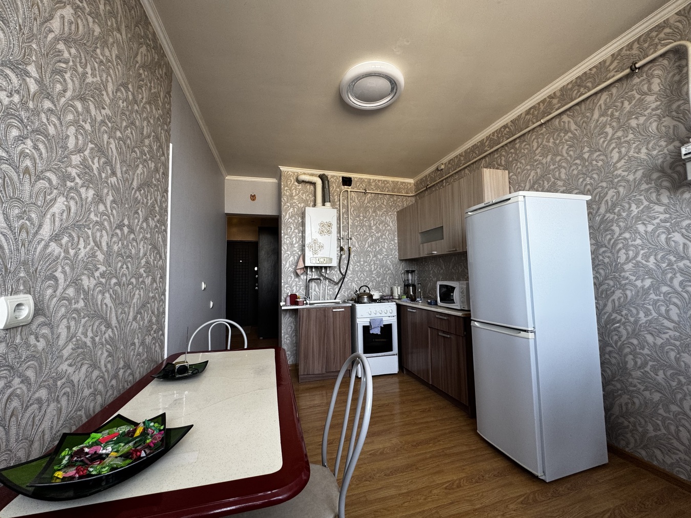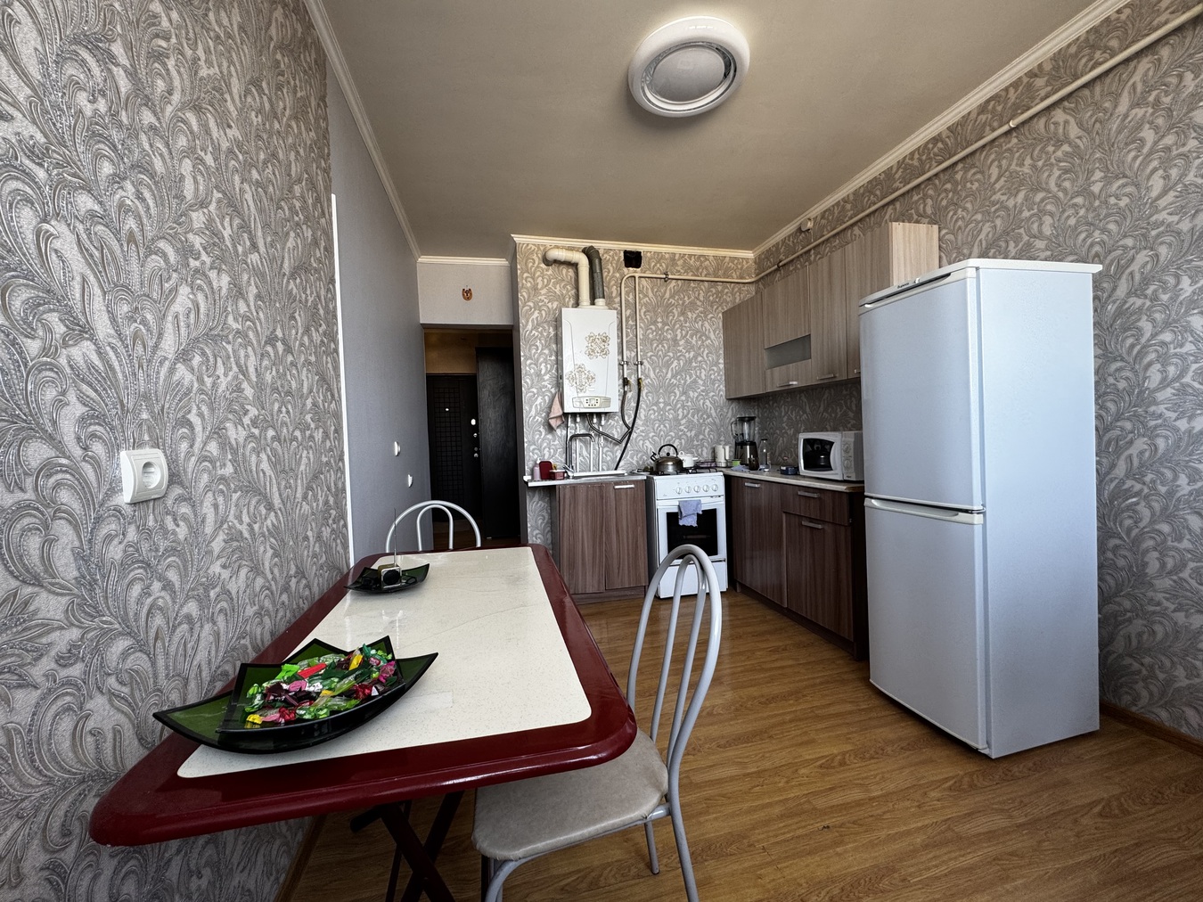 Евро 3-комнатная квартира площадью 68 кв.м. Всё, что есть на фото - остаётся будущему собственнику (холодильник, стиральная машинка, плита, кондиционеры, кровати, кухонный гарнитур). Заходи и живи. Хорошая шумоизоляция. Газовое отопление позволяет экономить коммунальные платежи, а также быть независимыми от сезонного отключения горячей воды.