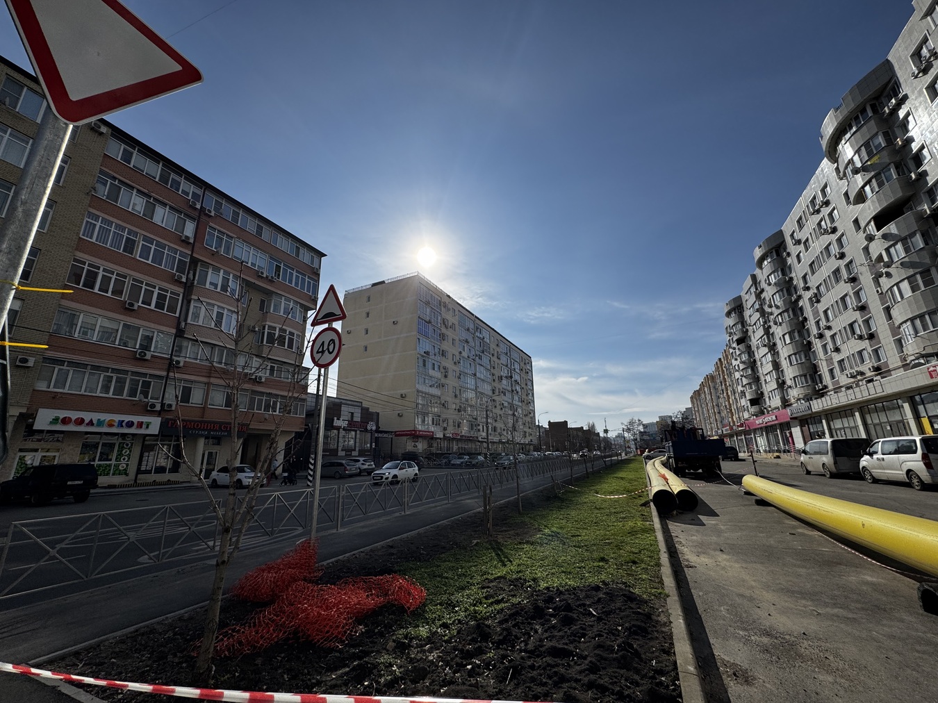 В доме есть все необходимые магазины: продуктовый, аптека, детская одежда, Магнит Косметик. Через дорогу - строительные, хозяйственные и мебельные магазины, салон красоты, стоматология, фитнес-клуб. В шаговой доступности - библиотека, школа №6, детский сад "Тополек", торговый центр "Красная площадь" с кинотеатром и другими развлечениями.