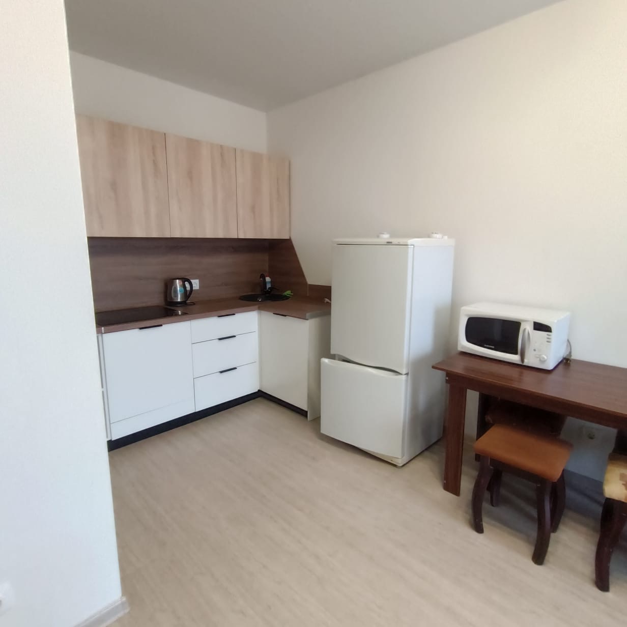 Кухня полностью оборудована для комфортного приготовления пищи 🍳, а ванная комната — светлая и чистая 🚿.
