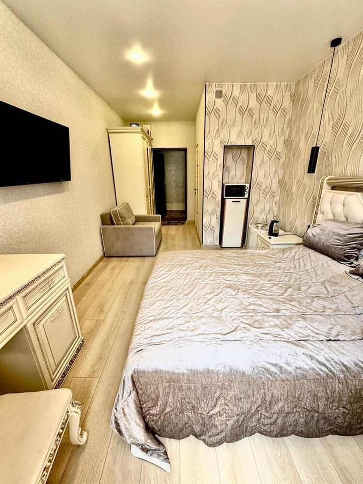 Продаётся просторная и светлая студия с боковым видом на море в самом сердце курорта!