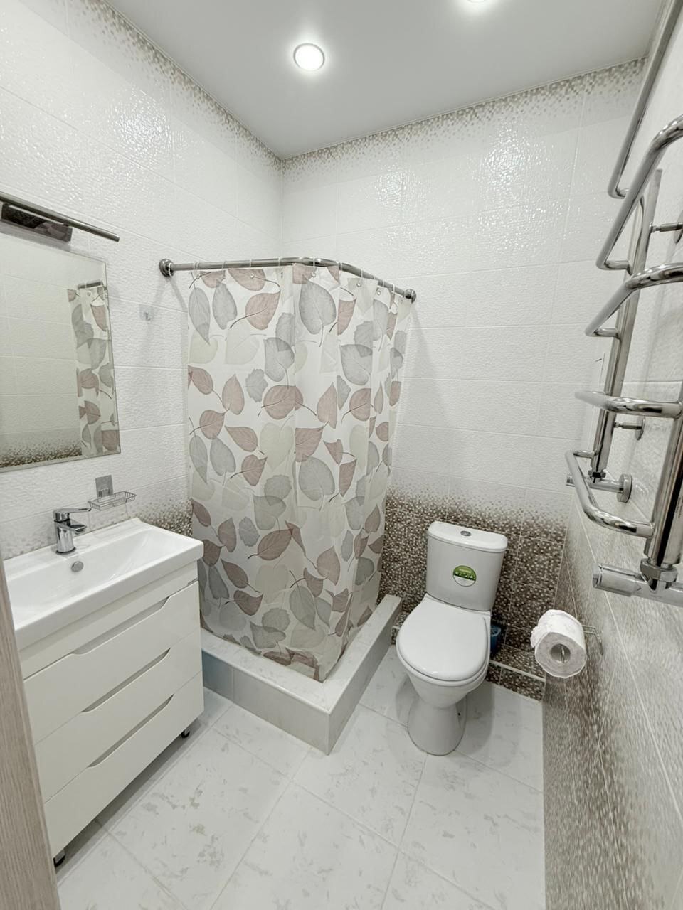 Квартира встречает вас современным ремонтом в нейтральных, дышащих тонах, которые создают ощущение простора и покоя. На кухне установлен практичный и стильный кухонный гарнитур, где найдется место для всей семьи и гостей. В него идеально вписан новый холодильник. А кондиционер подарит желанную прохладу в летний зной, делая климат в доме идеальным в любое время года.