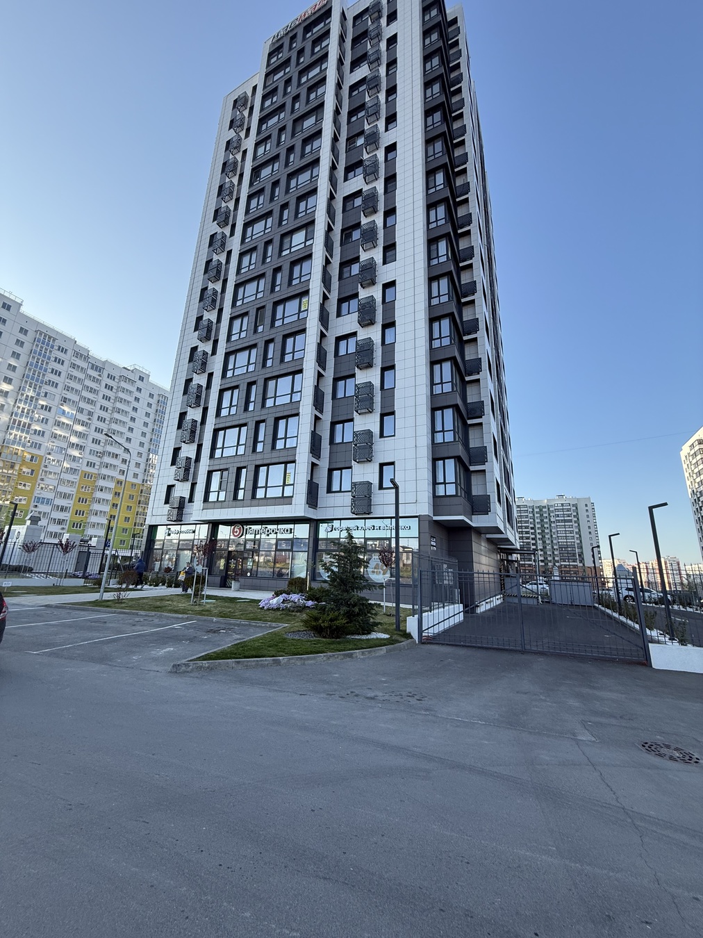 Закрытый двор , видеонаблюдение, озеленение, наличие открытой парковки во дворе И многоуровневой.