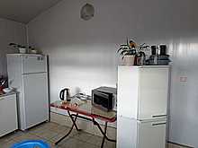 Кухня гостиная, общей площадью 41м2, разделена на зону отдыха и кухонную.