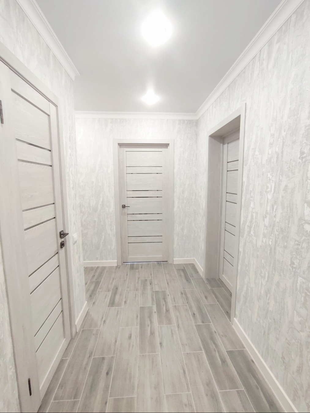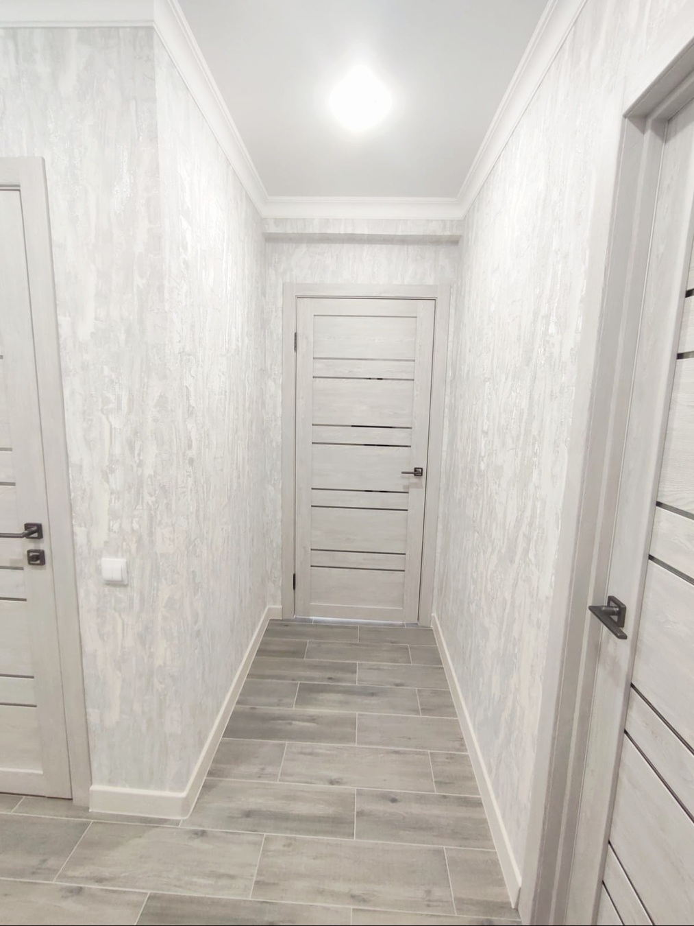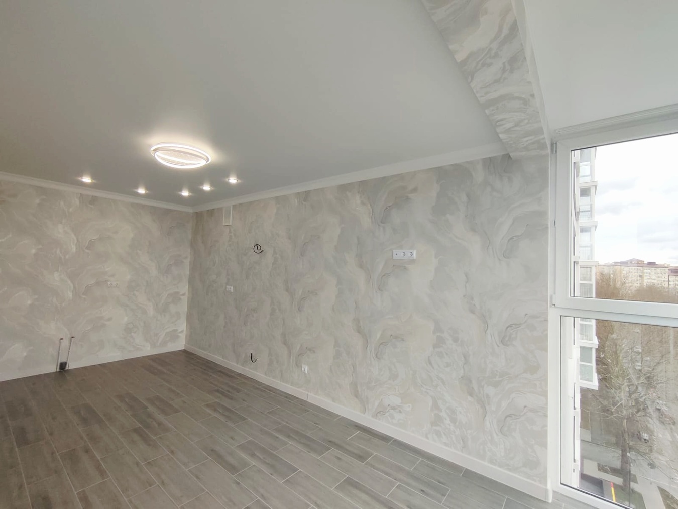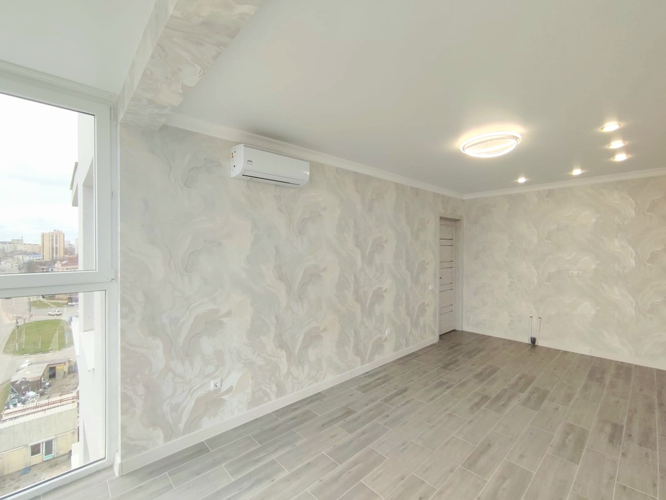 В квартире выполнен качественный ремонт в светлых тонах.