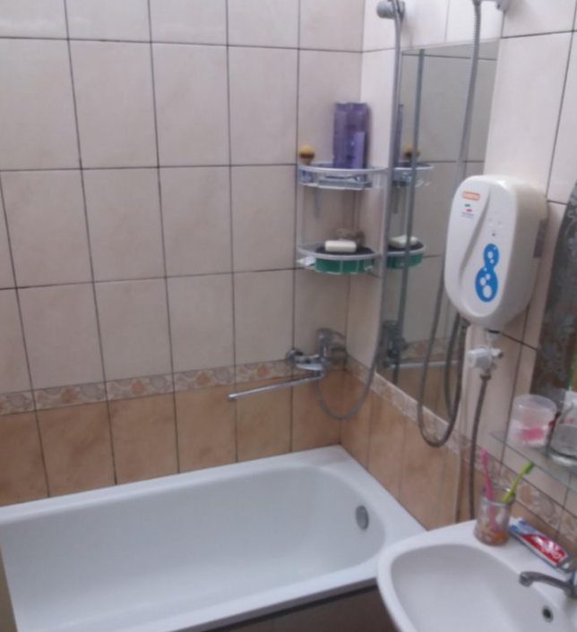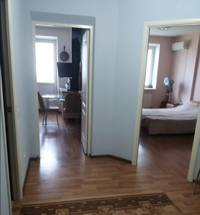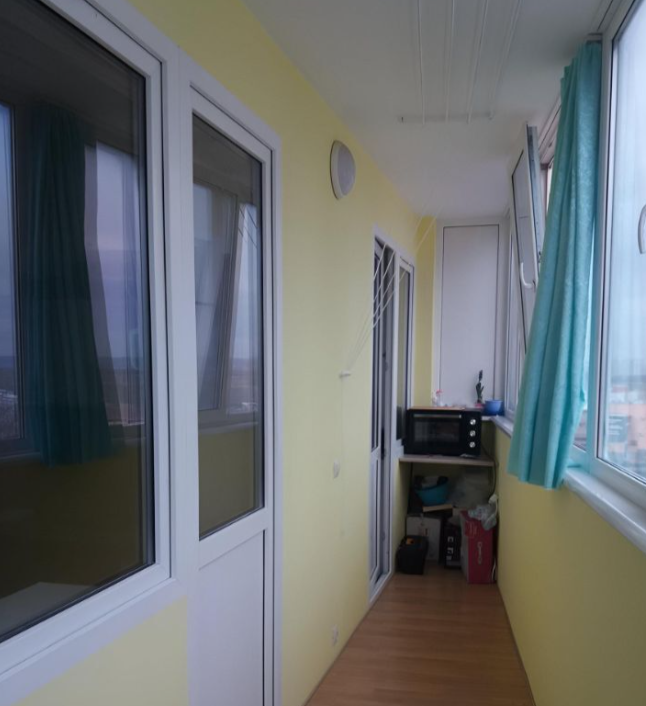 Теплая квартира около Черноморского парка. Большая площадь за счёт лоджии (выход есть из комнаты и кухни). Там можно организовать кабинет или место отдыха. Шумоизоляция хорошая. Санузел - в плитке.