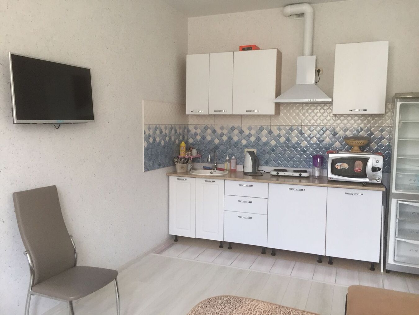 Квартира с ремонтом в светлых тонах, мебелью и техникой.