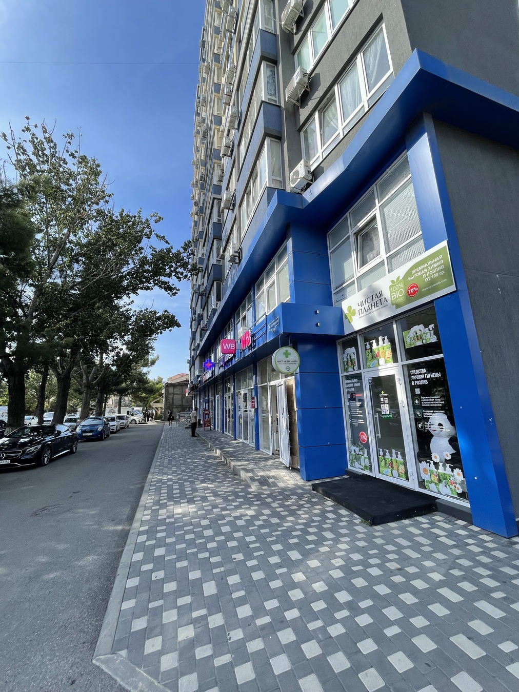 В доме расположены коммерческие помещения, в которых находятся: Fix Prise, кофейня, аптека, Wildberries, также в 50-ти метрах супермаркет "Пятерочка" и Перекресток, агрокомплекс "Выселковский".
