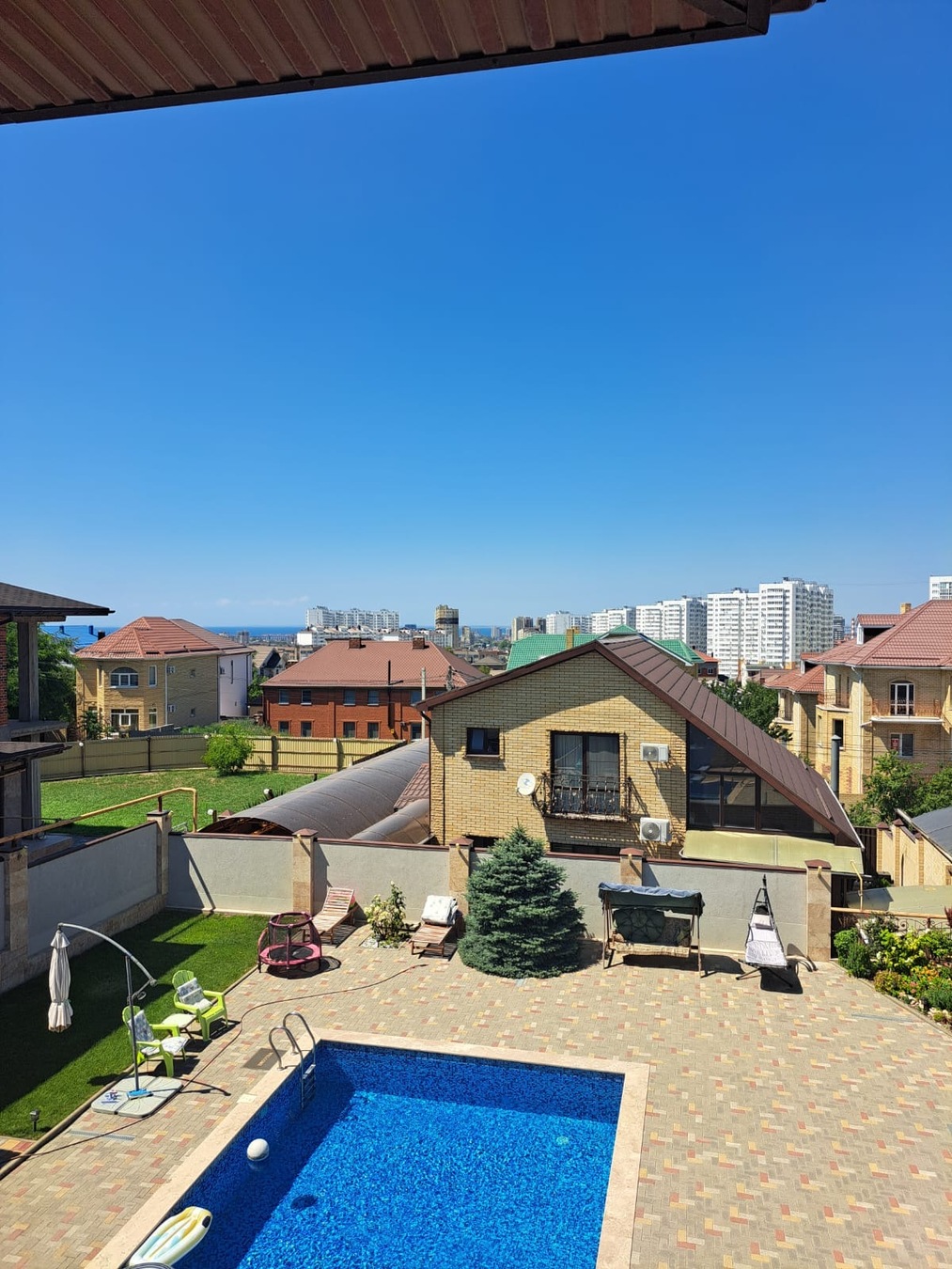 Дом расположен в лучшем районе для индивидуального проживания на территории города-курорта Анапа – Лысая гора. С участка открывается живописнейший вид на Чёрное море, город-курорт Анапа, Анапскую бухту и Кавказский горный хребет. На земельном участке располагаются: жилой дом со встроенным гаражом, бассейн с каскадом водопадов, летняя кухня с санузлом и душевой. Территория участка полностью благоустроена, смонтирована архитектурно- техническая подсветка зданий, сооружений и периметрального ограждения участка, выполнен ландшафтный дизайн, высажены фруктовые деревья и кустарники.