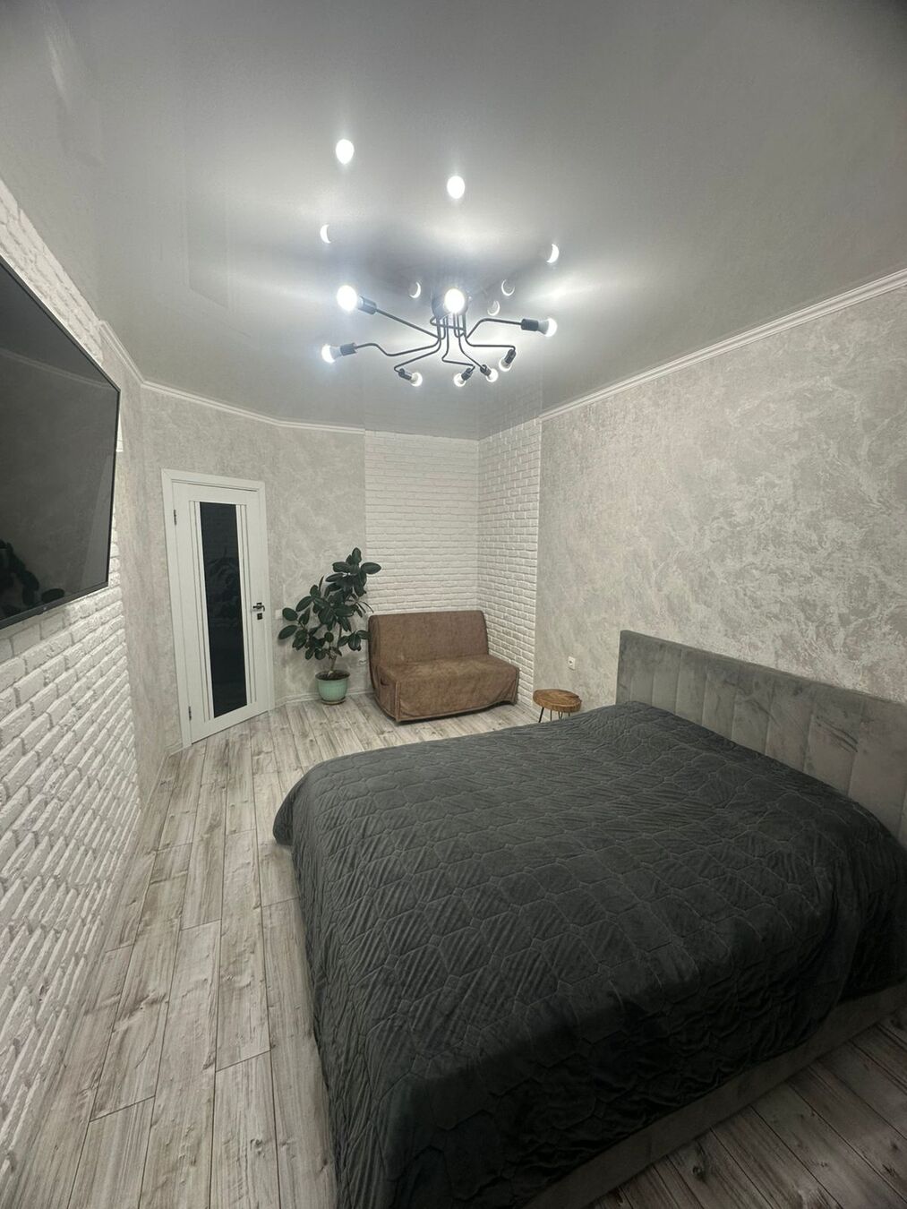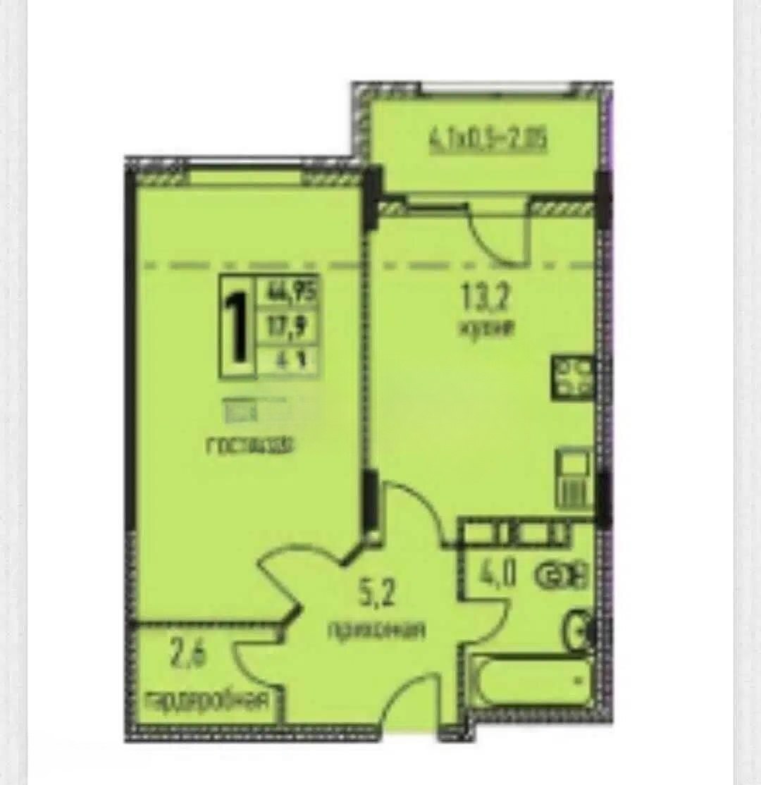 Из просторной прихожей вы попадаете в кухню, комнату, санузел, гардеробную. Комната изолирована от кухни.