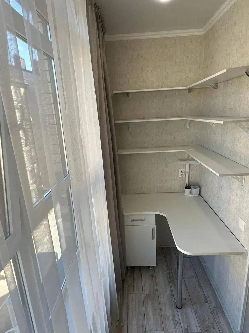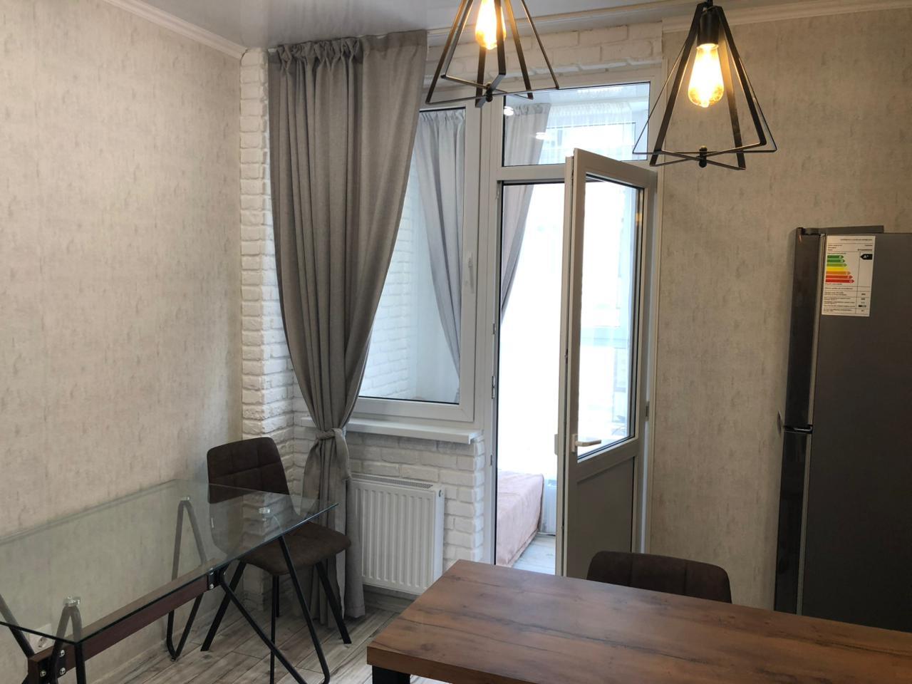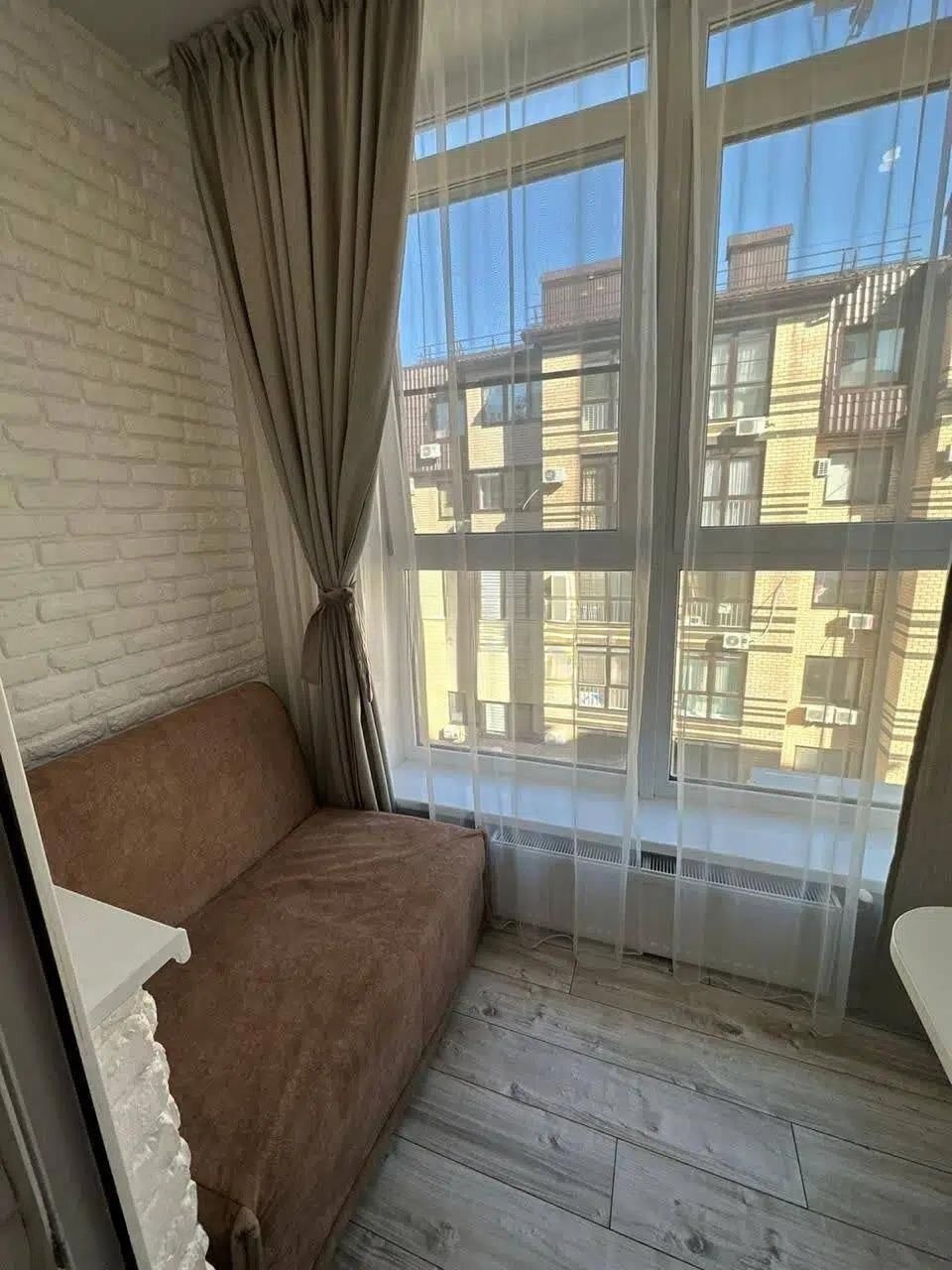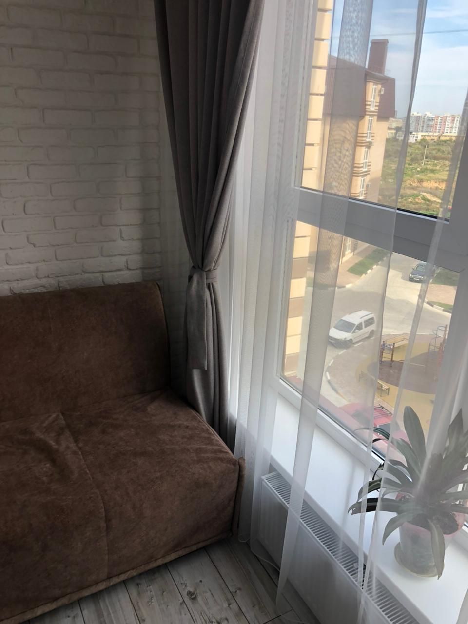 Из кухни выход на лоджию. Окна в пол. Там есть рабочий стол и диванчик раскладной для отдыха.
