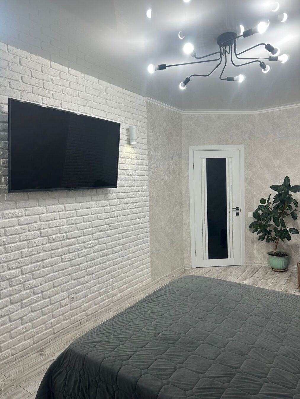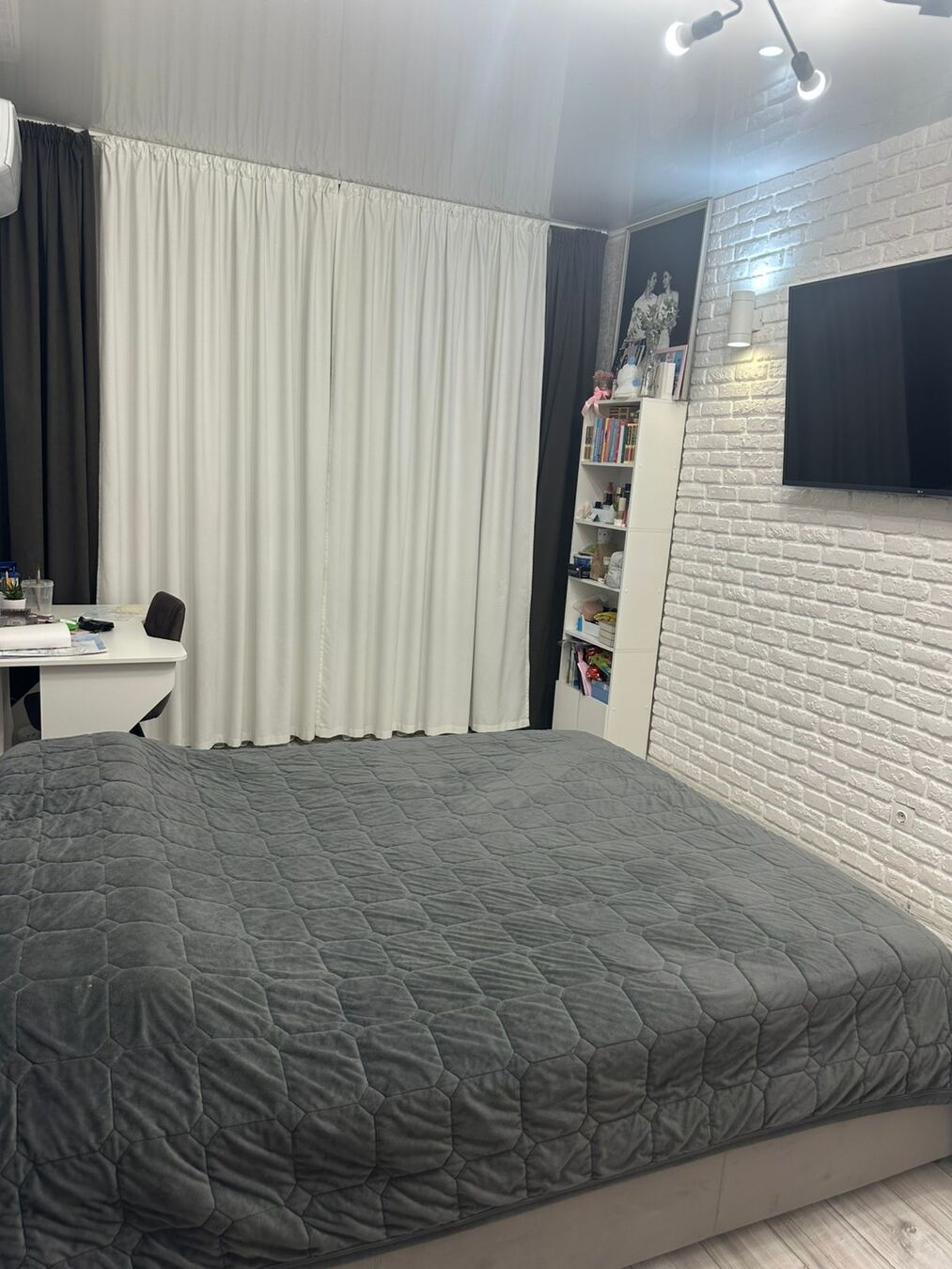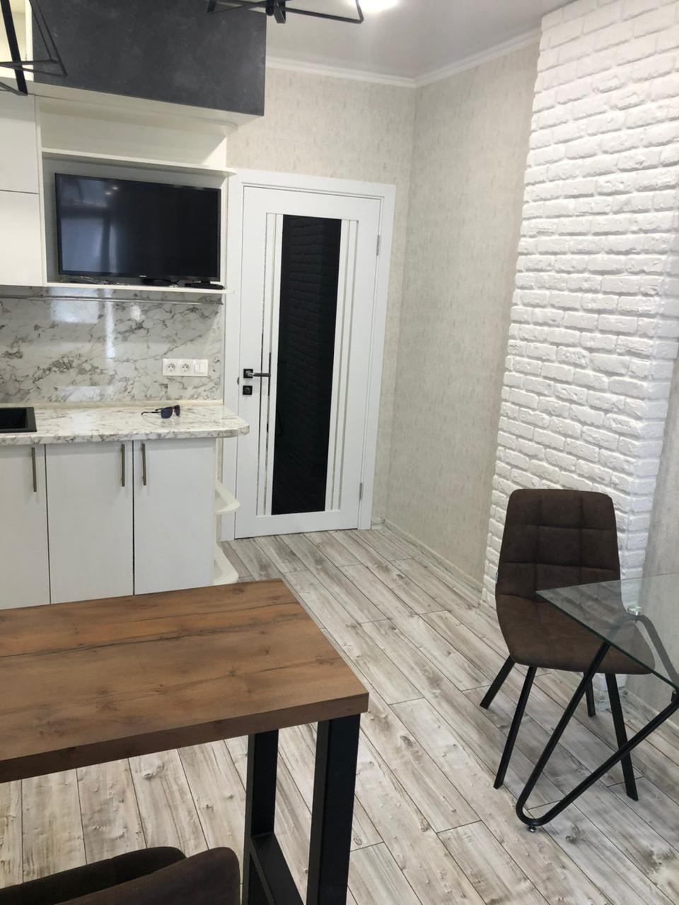 Кухня оснащена всей бытовой техникой.В комнате есть диван на две персоны, и небольшой раскладной диванчик, всё отличного качества, также телевизор, кондиционер.