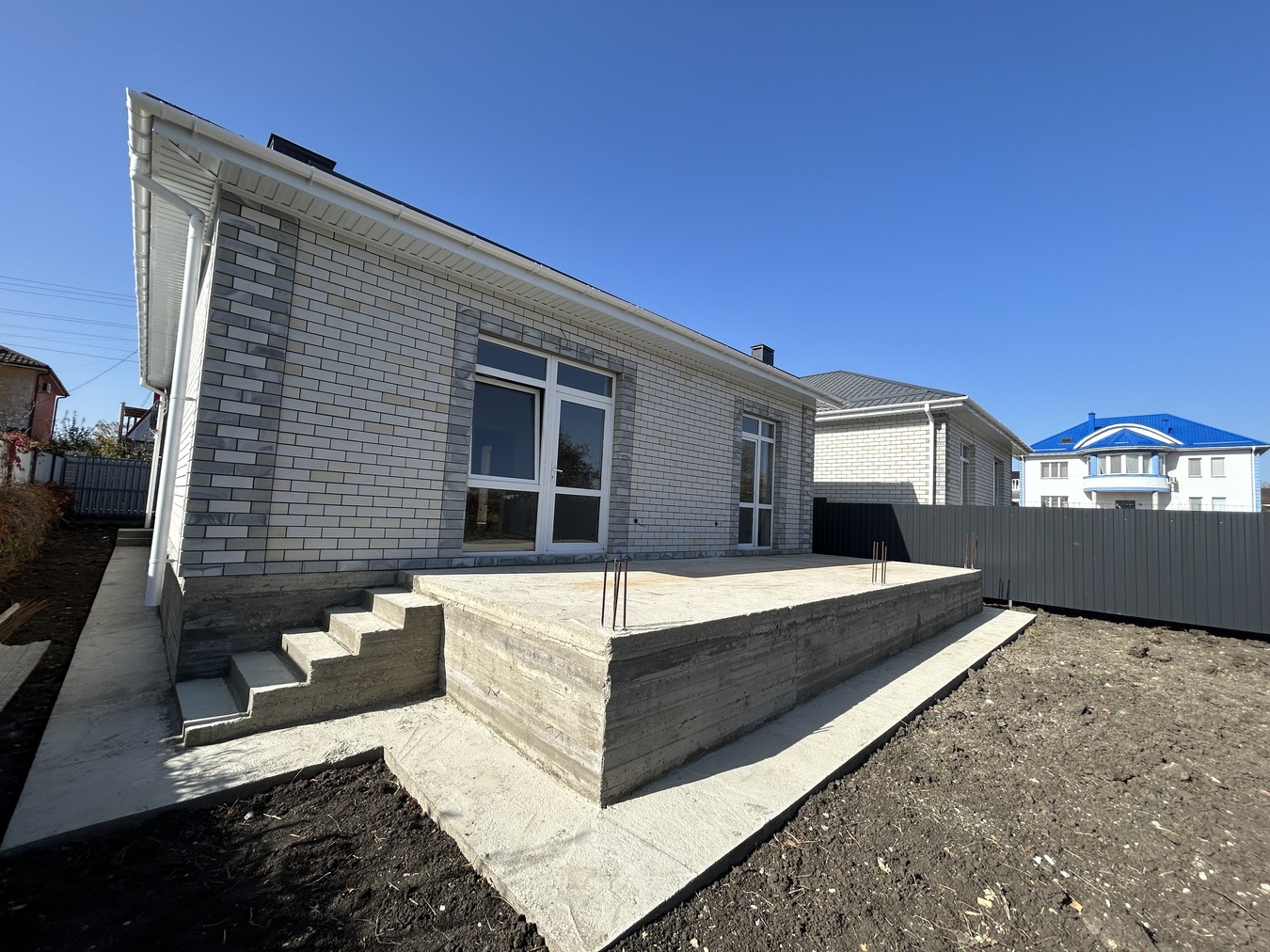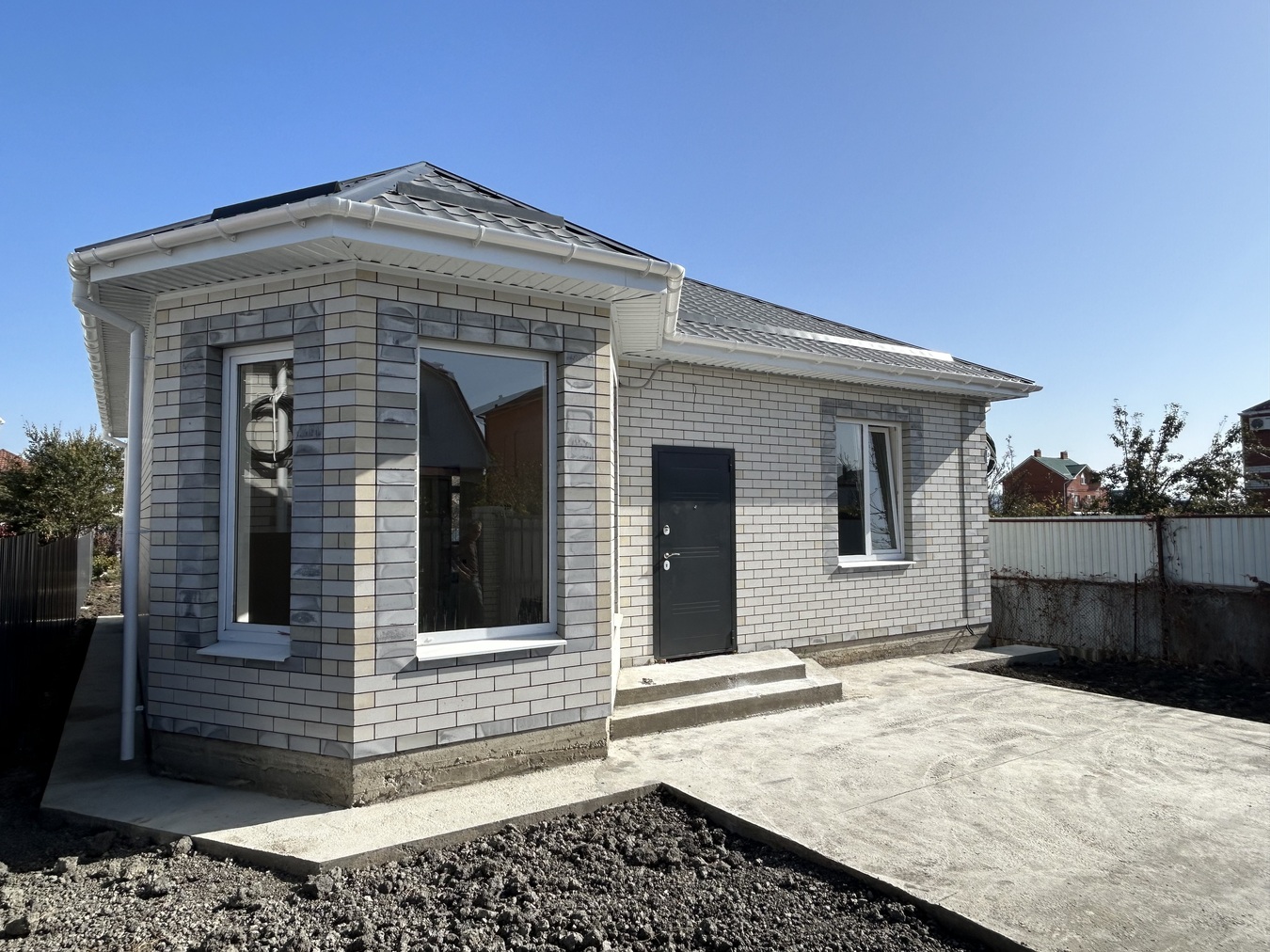 Дом расположен в ближайшем пригороде г. Анапа, 10 минут до города на машине, 5 минут до песчаного пляжа. В поселке есть продуктовые магазины (в т.ч. Магнит), хозяйственные, детская и спортивная площадки.